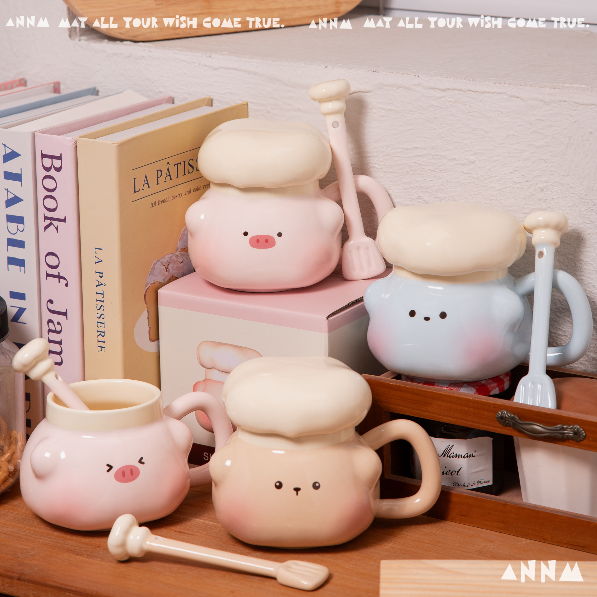 可爱小猪水杯女生高颜陶瓷马克杯带盖生日礼物杯子家用喝水咖啡杯
