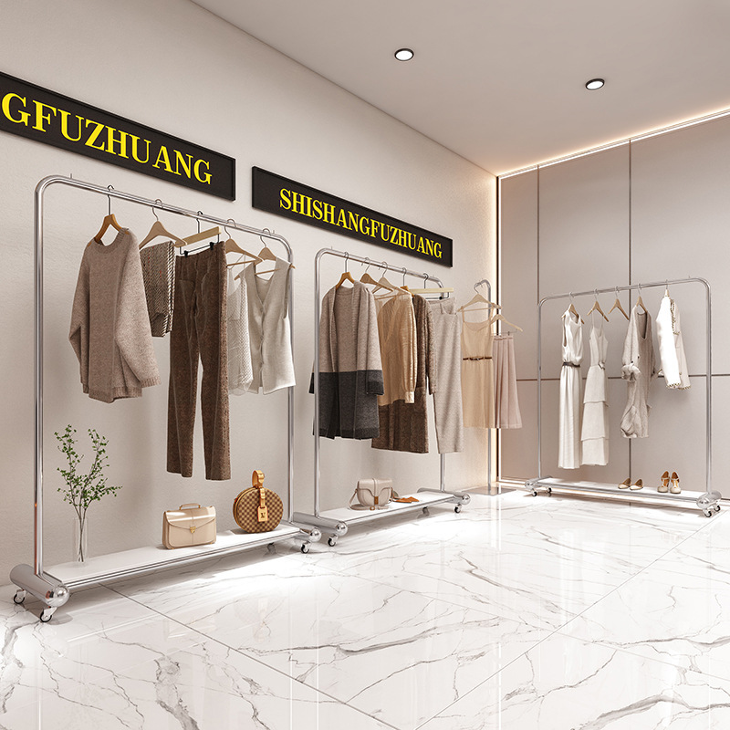 洋服店展示棚ステンレス床置き式婦人服店家庭用ハンガー移動中島陳列服棚
