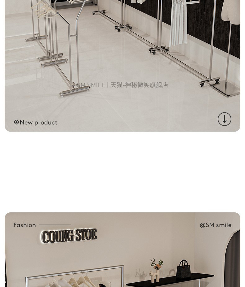服装店展示架移动落地式货架男女装带轮挂衣架不锈钢拉丝银中岛架