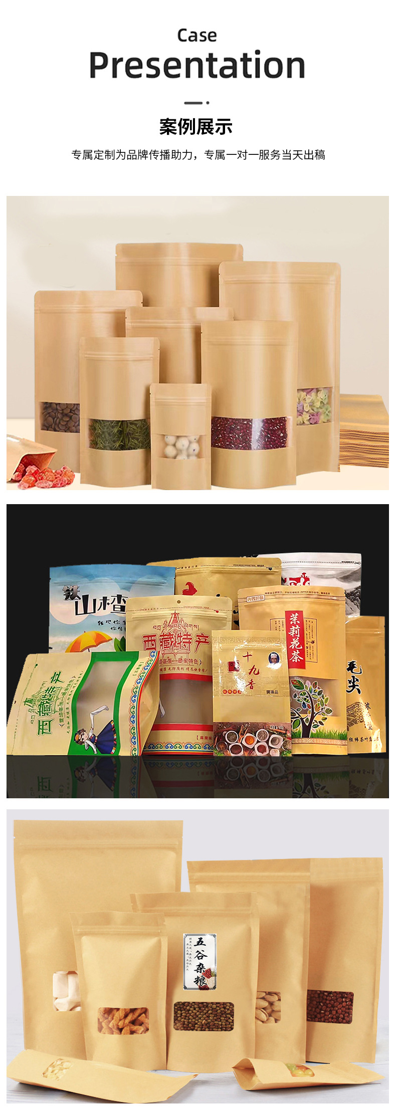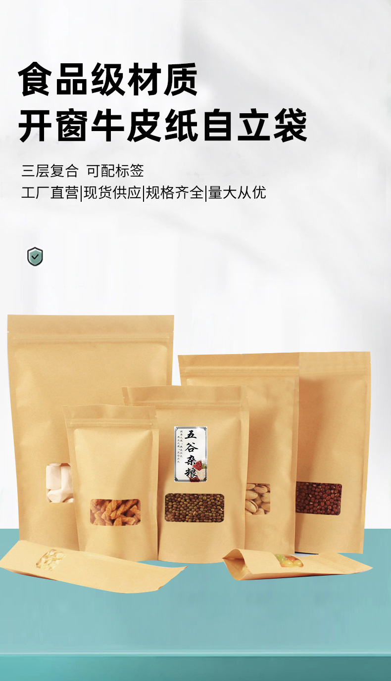 开窗牛皮纸袋干果食品包装袋宠物零食自封袋自立袋茶叶食品密封袋