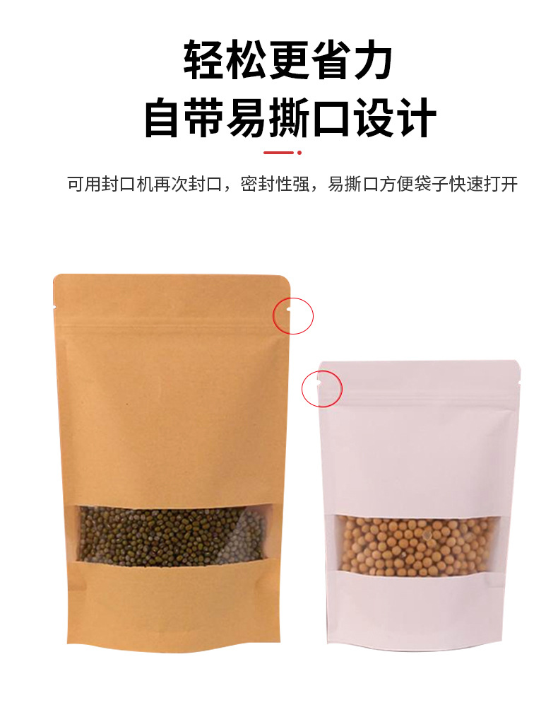 白い窓開けクラフト紙袋干物食品包装袋フロストクラフト紙自立自封袋ナッツ密封袋