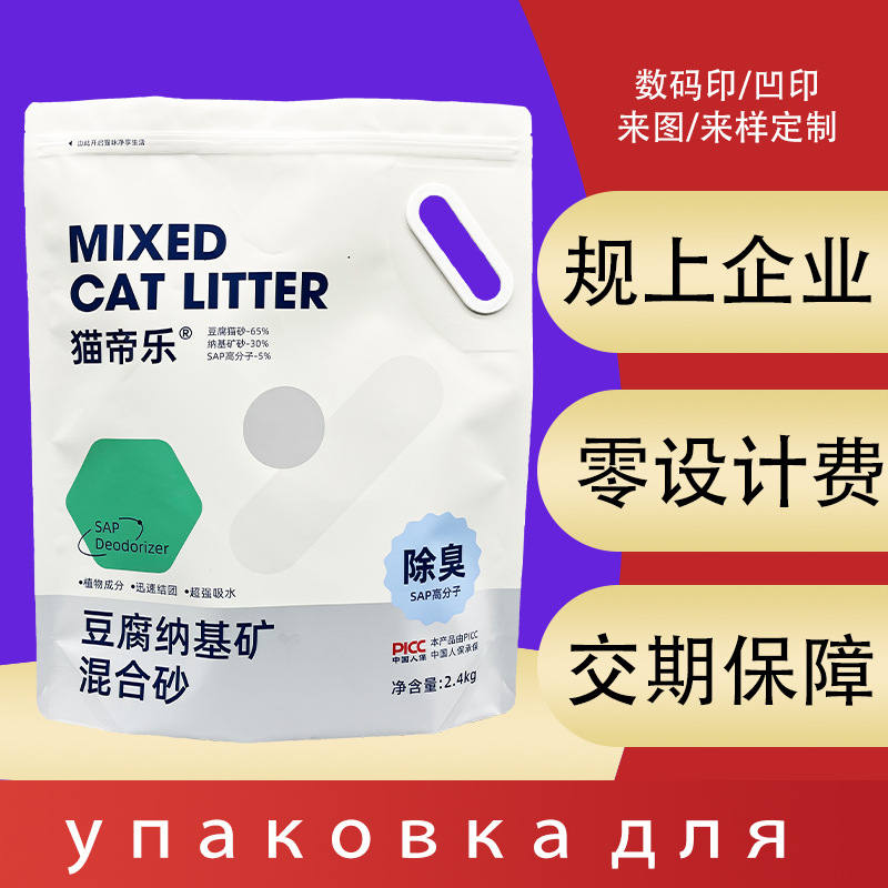 自立底混合猫砂包装袋ペットスナックキャットフードドッグフードバッグサイドハンドルプラスチック食品密封袋
