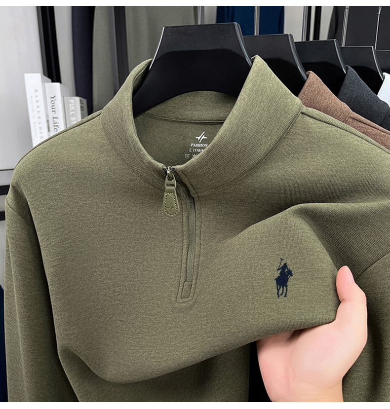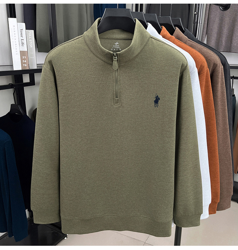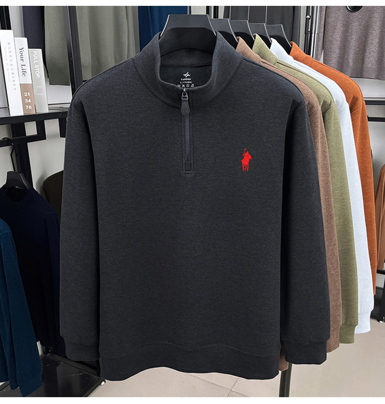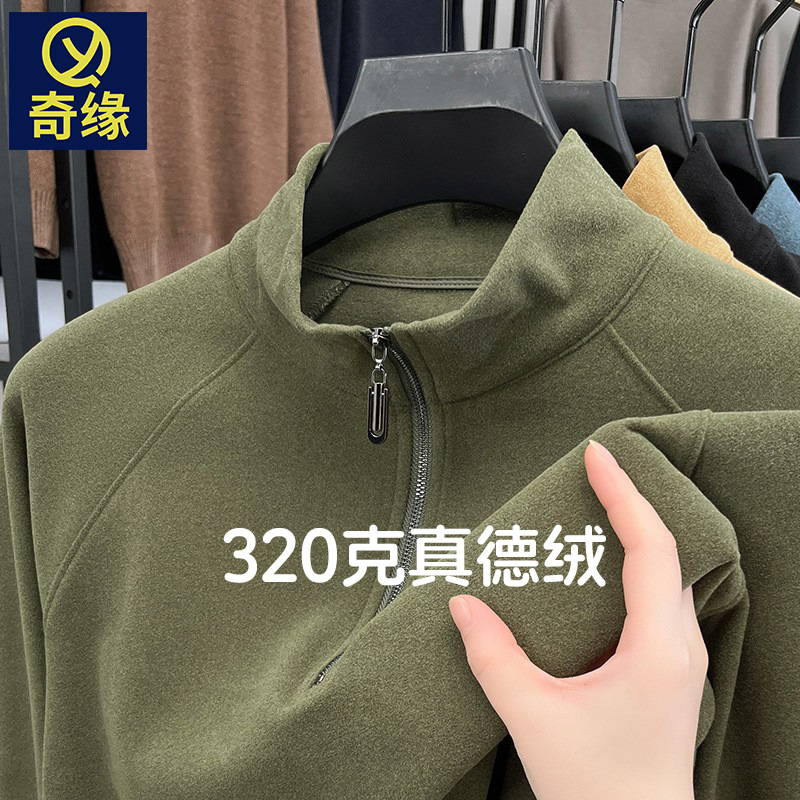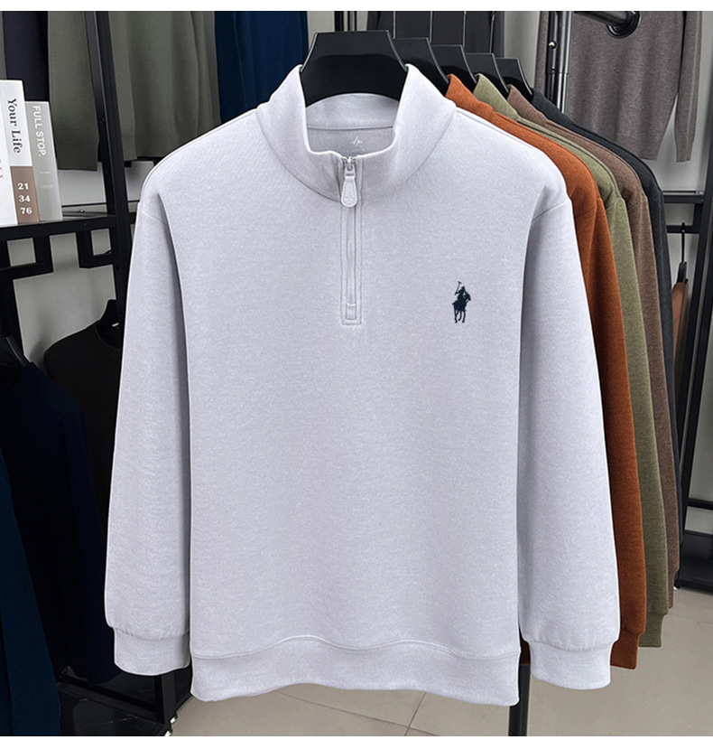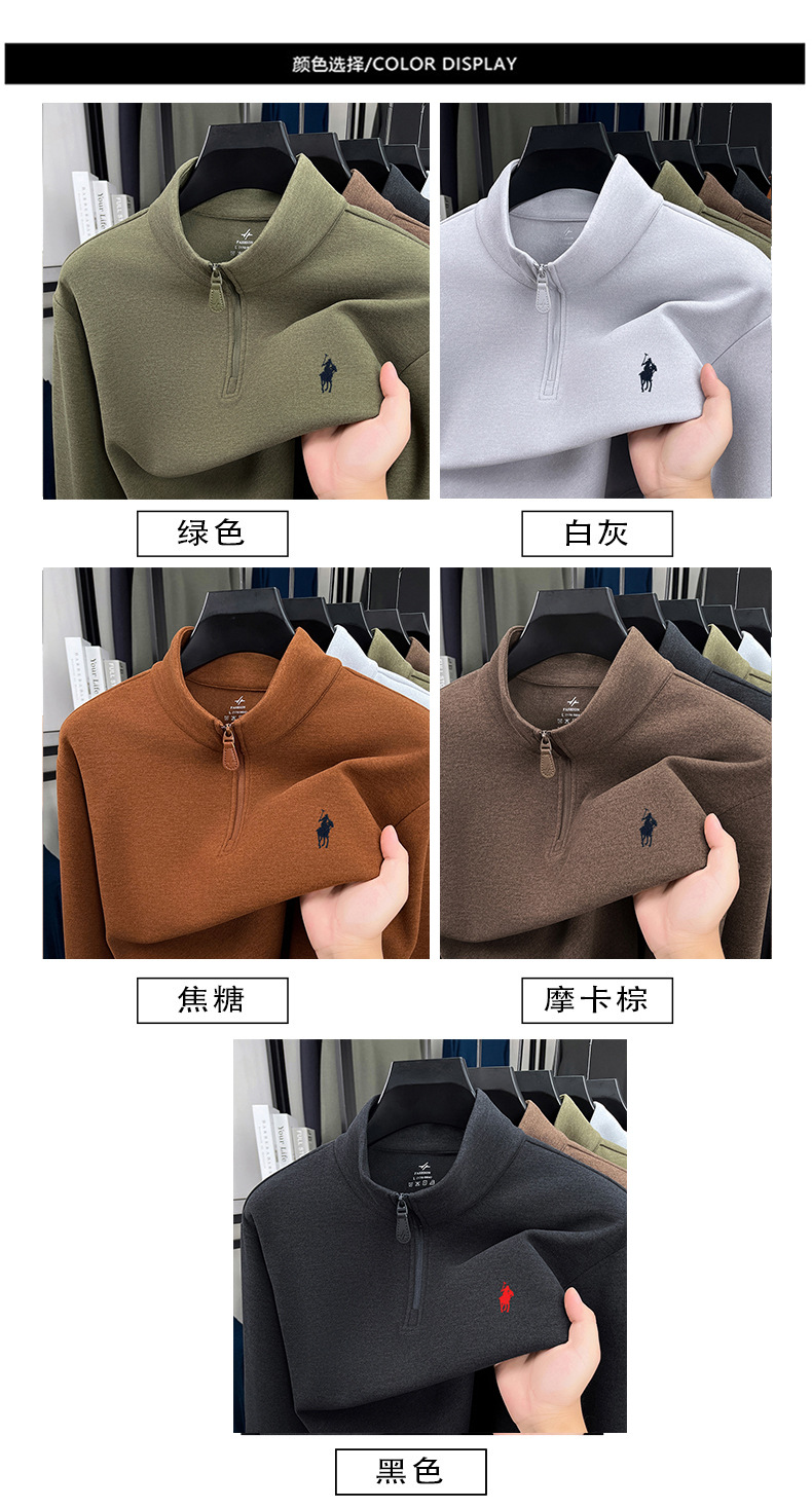 德绒半拉链卫衣男2025秋季新款刺绣小马标加厚保暖长袖打底衫批发
