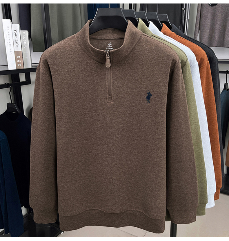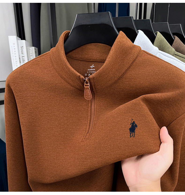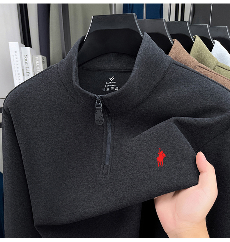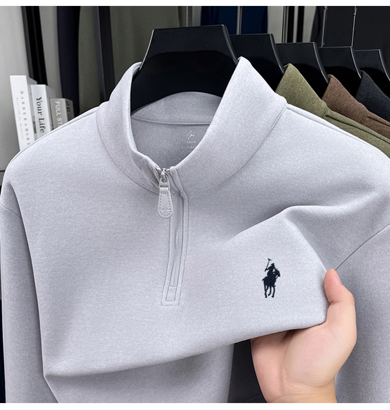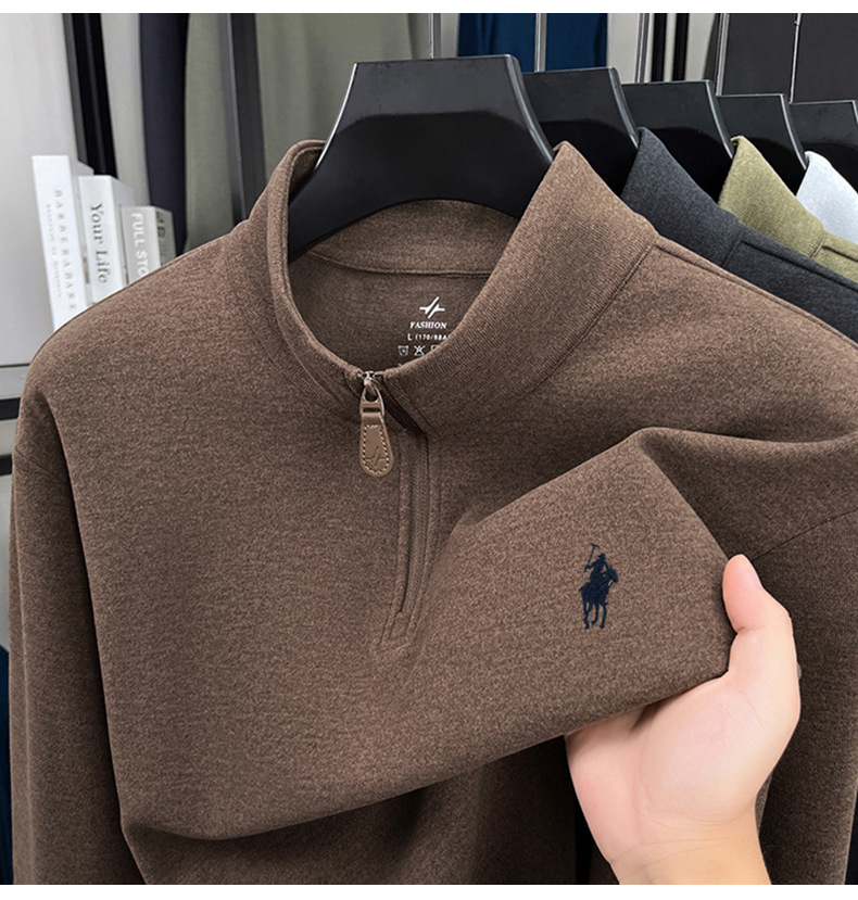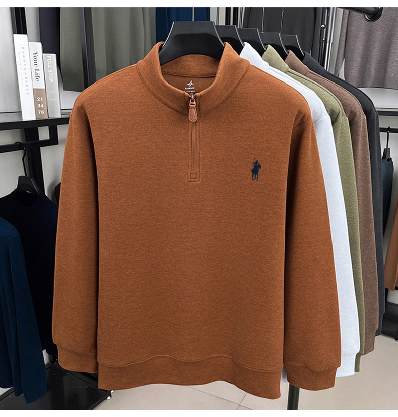 德绒半拉链卫衣男2025秋季新款刺绣小马标加厚保暖长袖打底衫批发