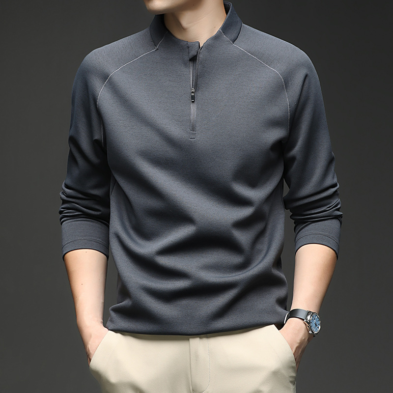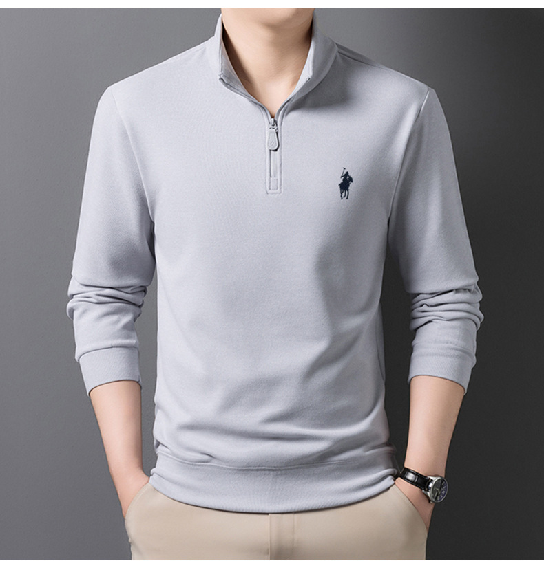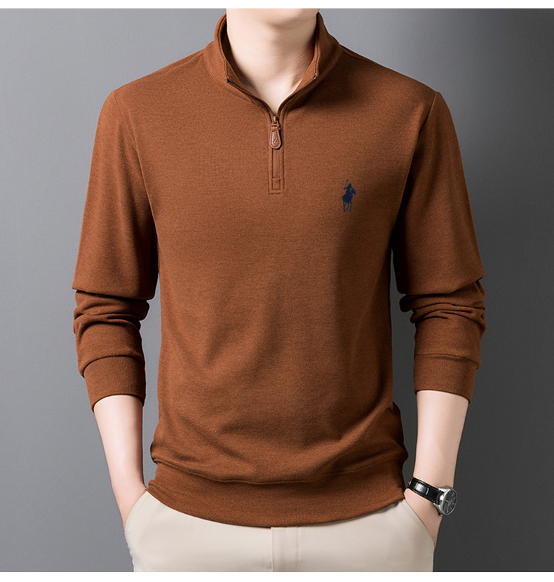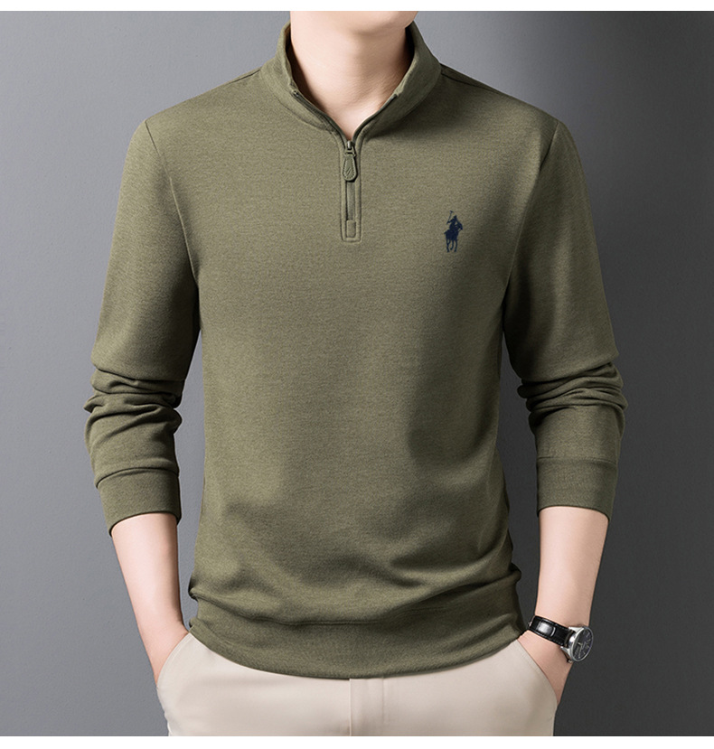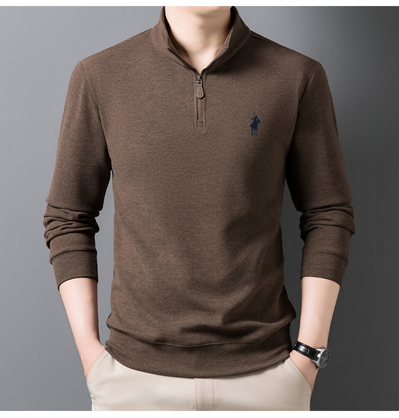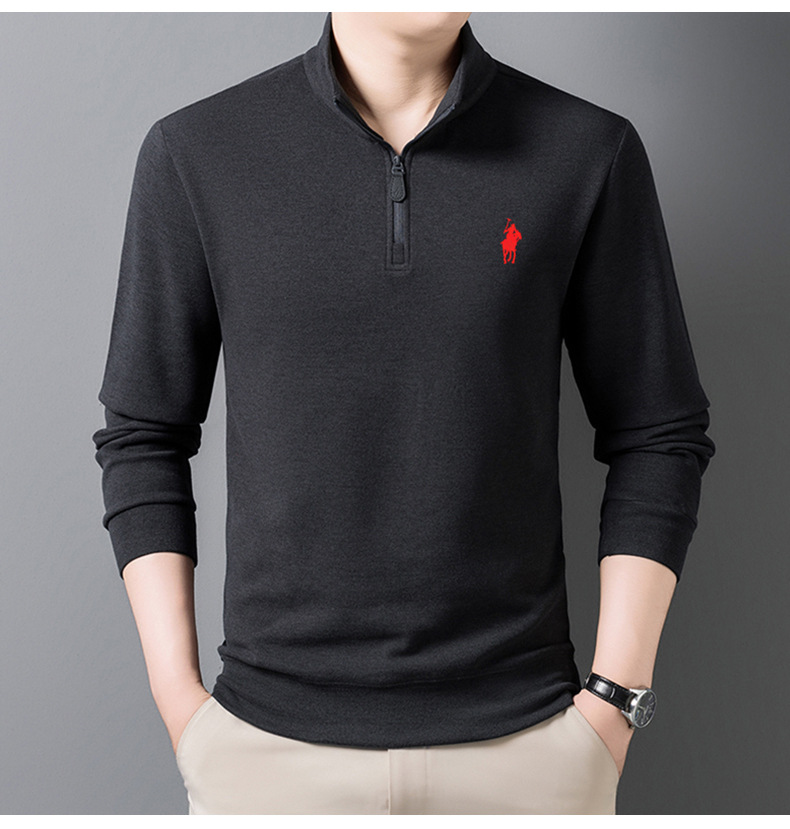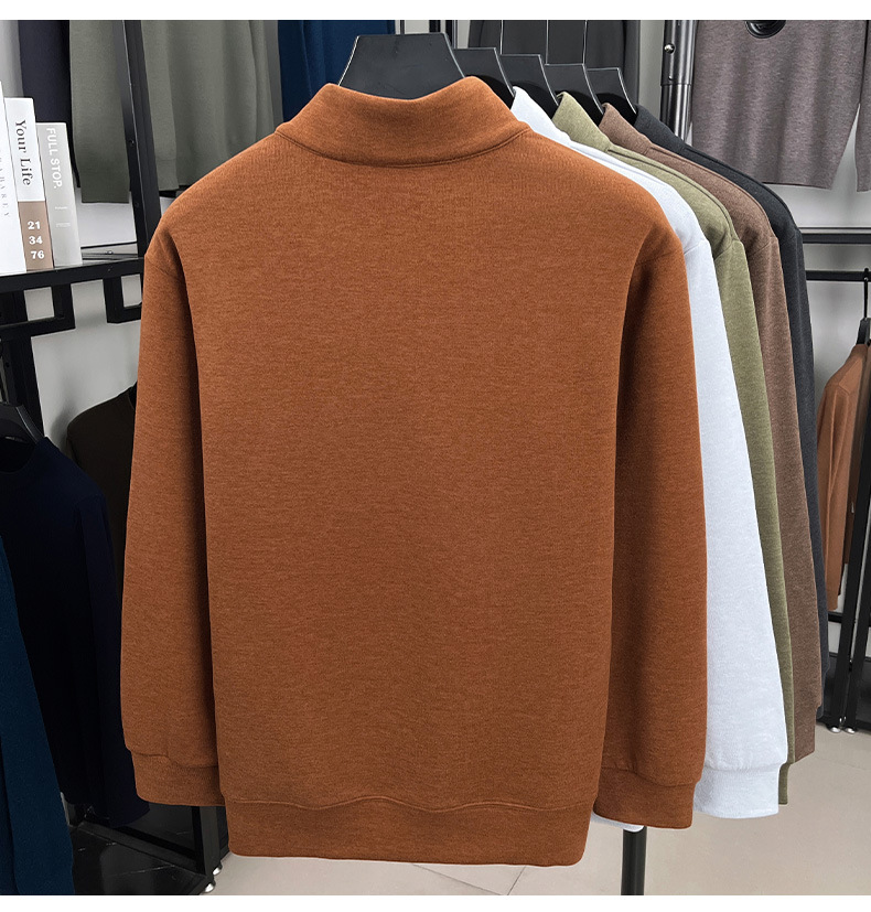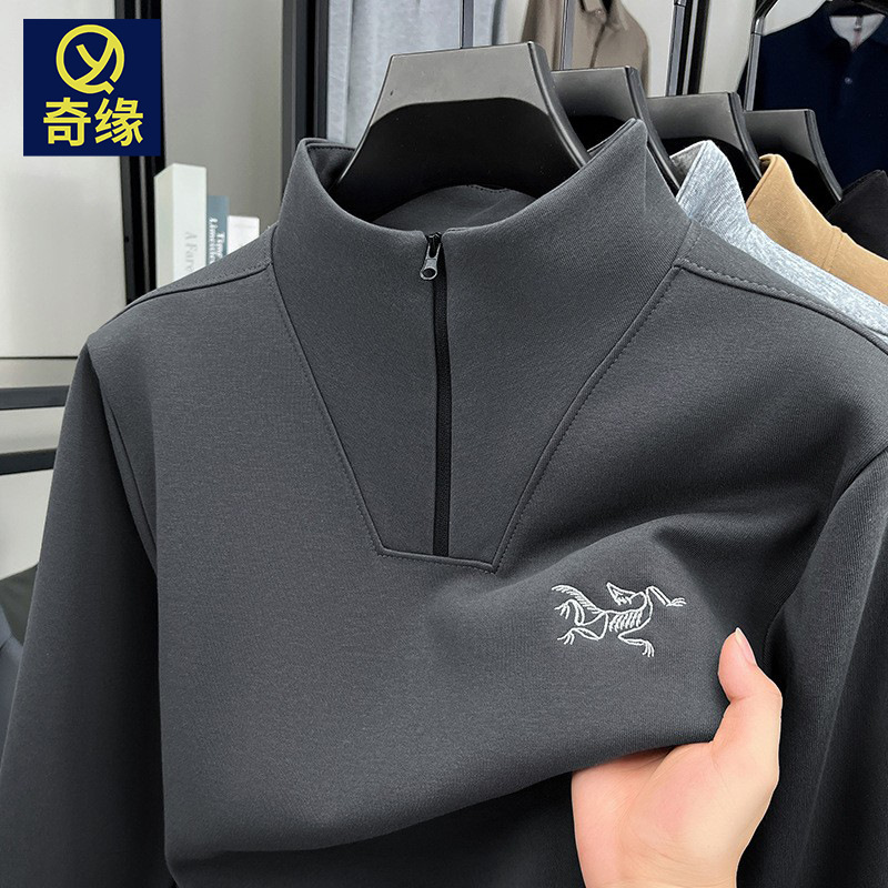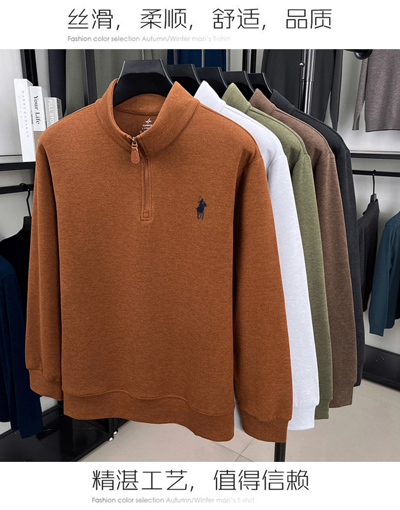 2025秋季新款半拉链卫衣男款中年时尚休闲纯色刺绣立领长袖男t恤