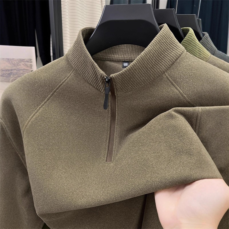 徳絨毛ファスナーの男性モデル秋冬の新型は保温カジュアルの半高襟と長袖の男性の底のシャツを厚くします。