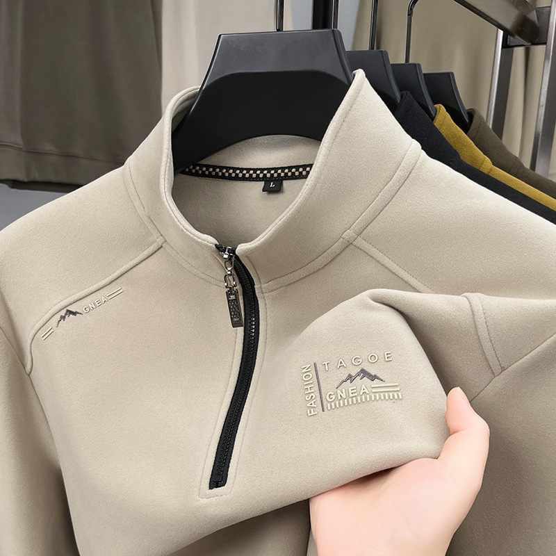 鸟家刺绣秋冬款加绒加厚男士半拉链立领纯色卫衣长袖百搭保暖上衣