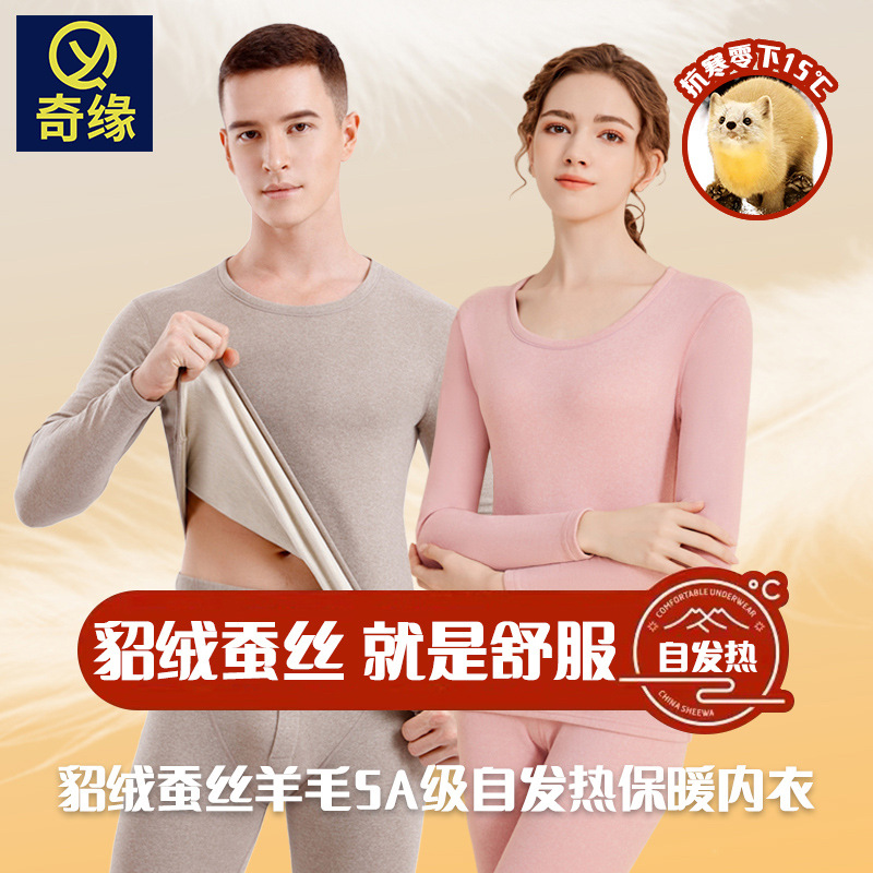 カシミヤ绢糸ミンクパイル保温下着男女秋冬カップルモデル発熱男性秋衣秋ズボンセット男性