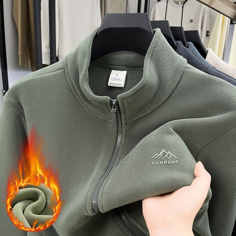2025冬季新款奥粒绒男士立领开衫外套休闲加绒加厚保暖摇粒绒夹克