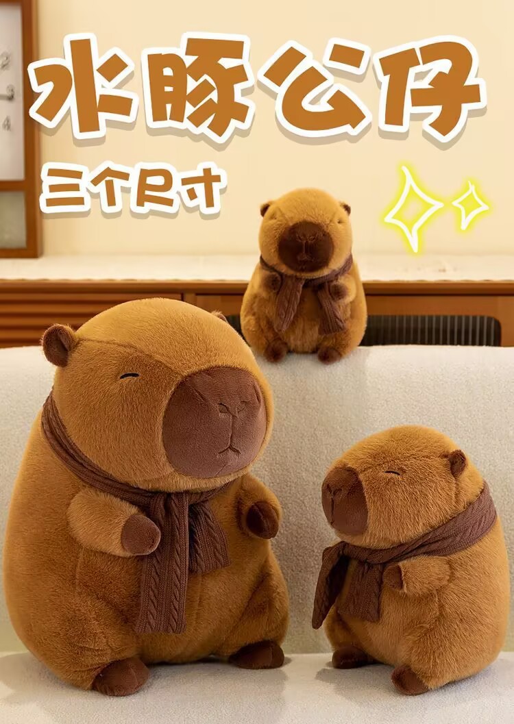 网红围巾卡皮巴拉公仔水豚抓娃娃机儿童礼物抱枕毛绒玩具