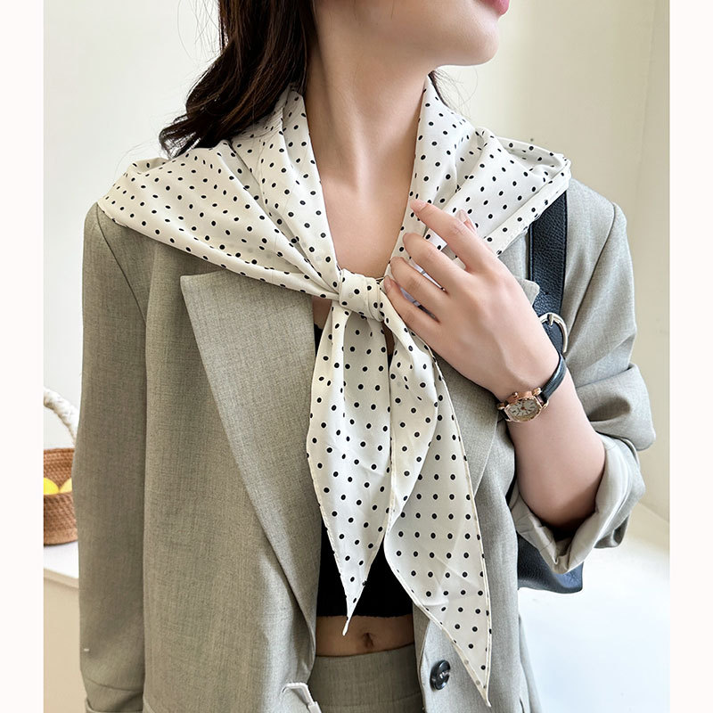 韓系春夏の薄い曲の歯の波点のシルクタオルの女性の雰囲気感の三角のスカーフの流行の装飾のスカーフの多機能