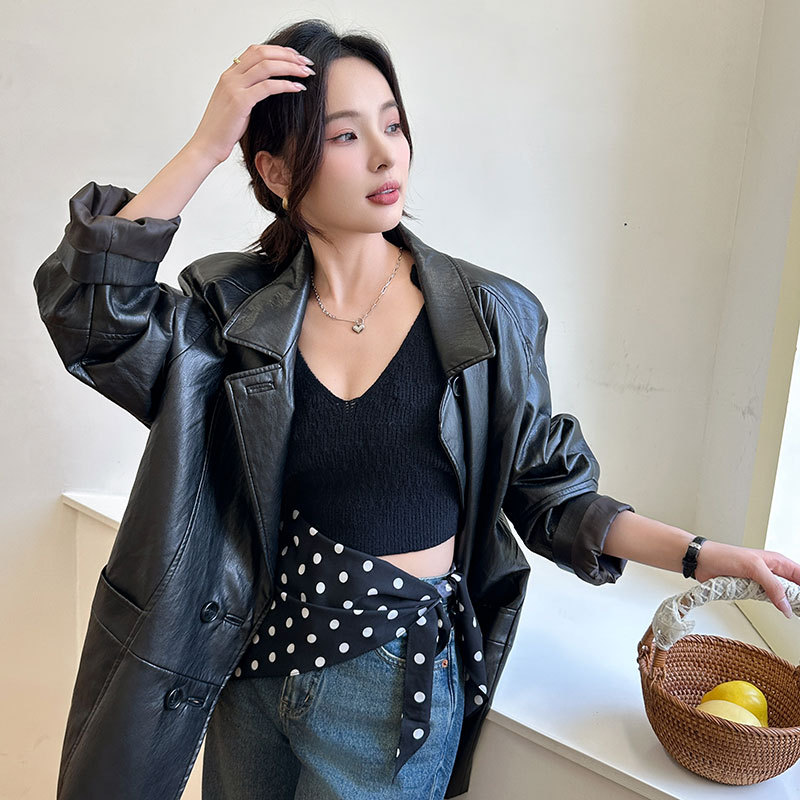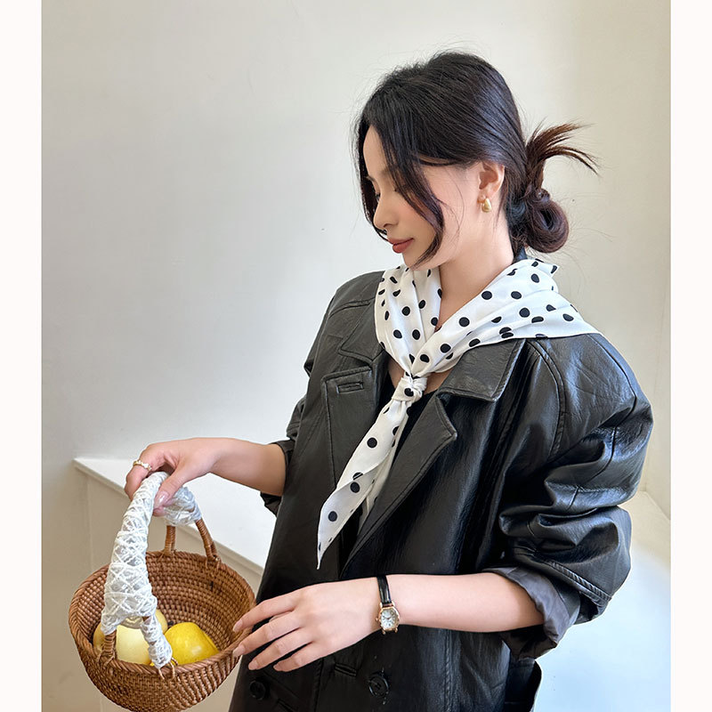 韩系波点印花丝巾高级感配饰系脖女绑发带秋季时髦花边包头巾批发