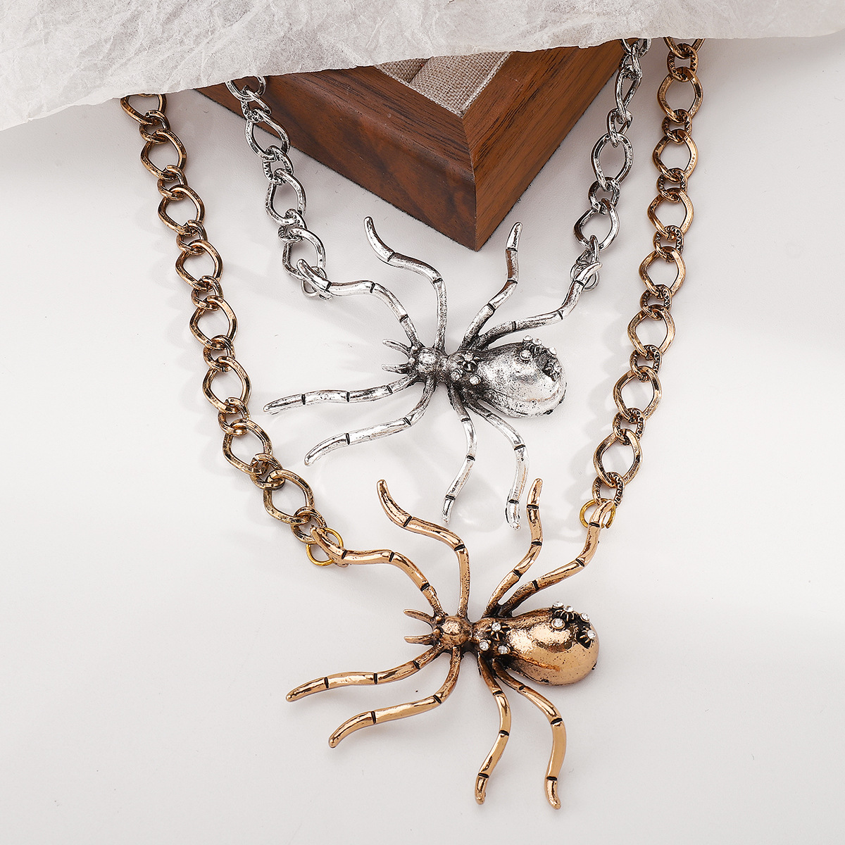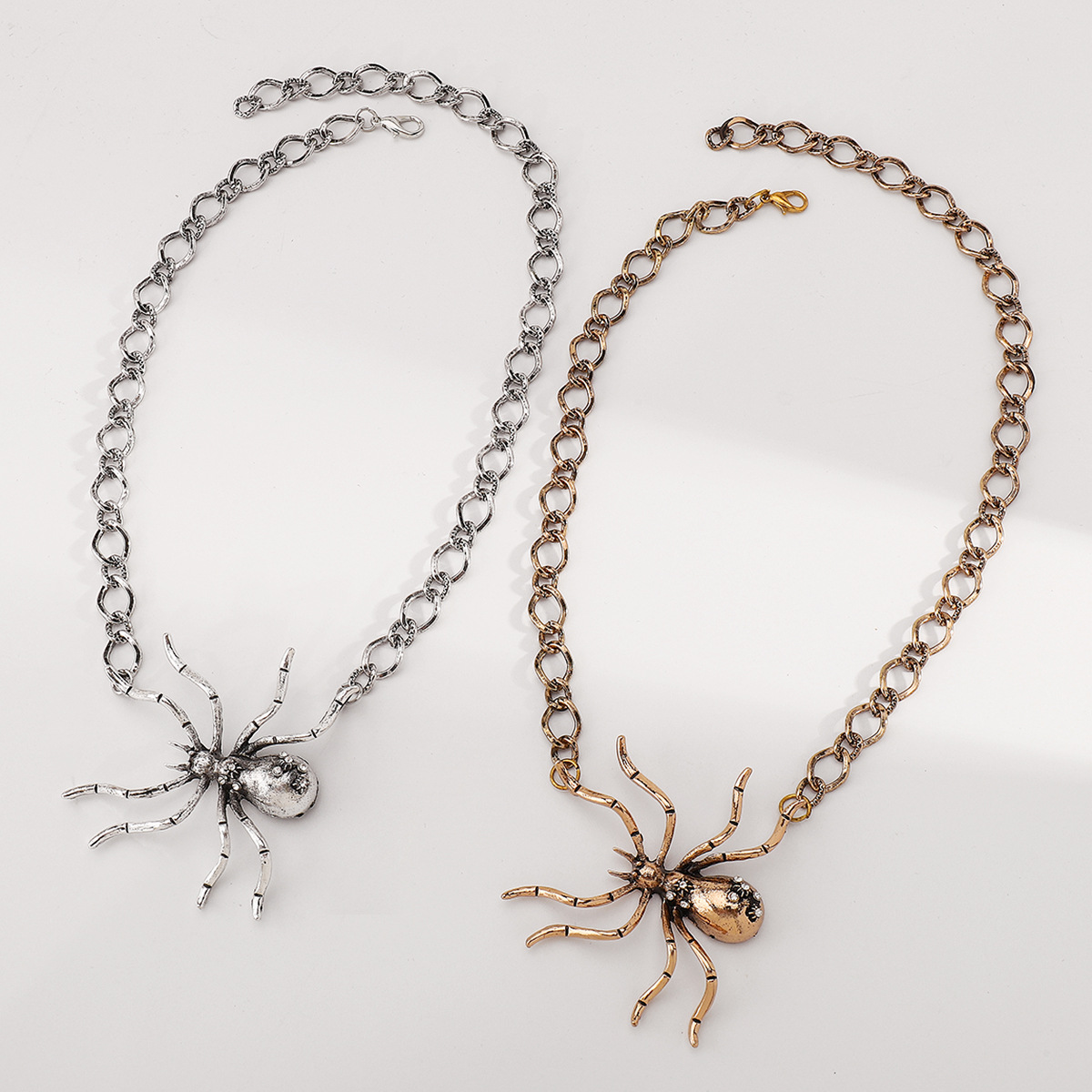N12880万圣节新款夸张设计感合金大蜘蛛吊坠项链耳环女个性锁骨链