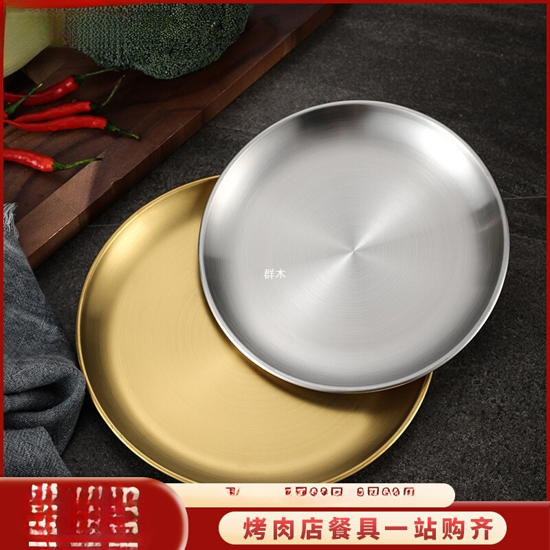 韓国 304 ステンレス鋼ディスク商業ゴールデンバーベキュープレートトレイフルーツケーキプレートディナープレートボーンプレート浅いプレート