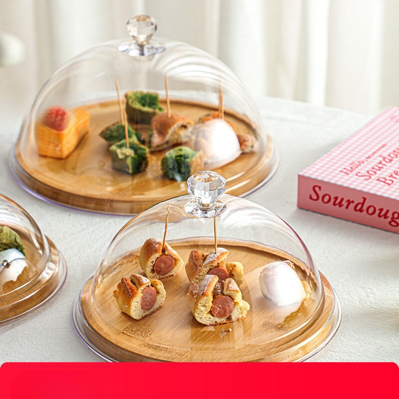 フルーツテイスティングディスプレイトレイ食品ダストカバーペストリートレイ透明蓋付きデザートトレイ蓋付きラウンドテイスティングボックス