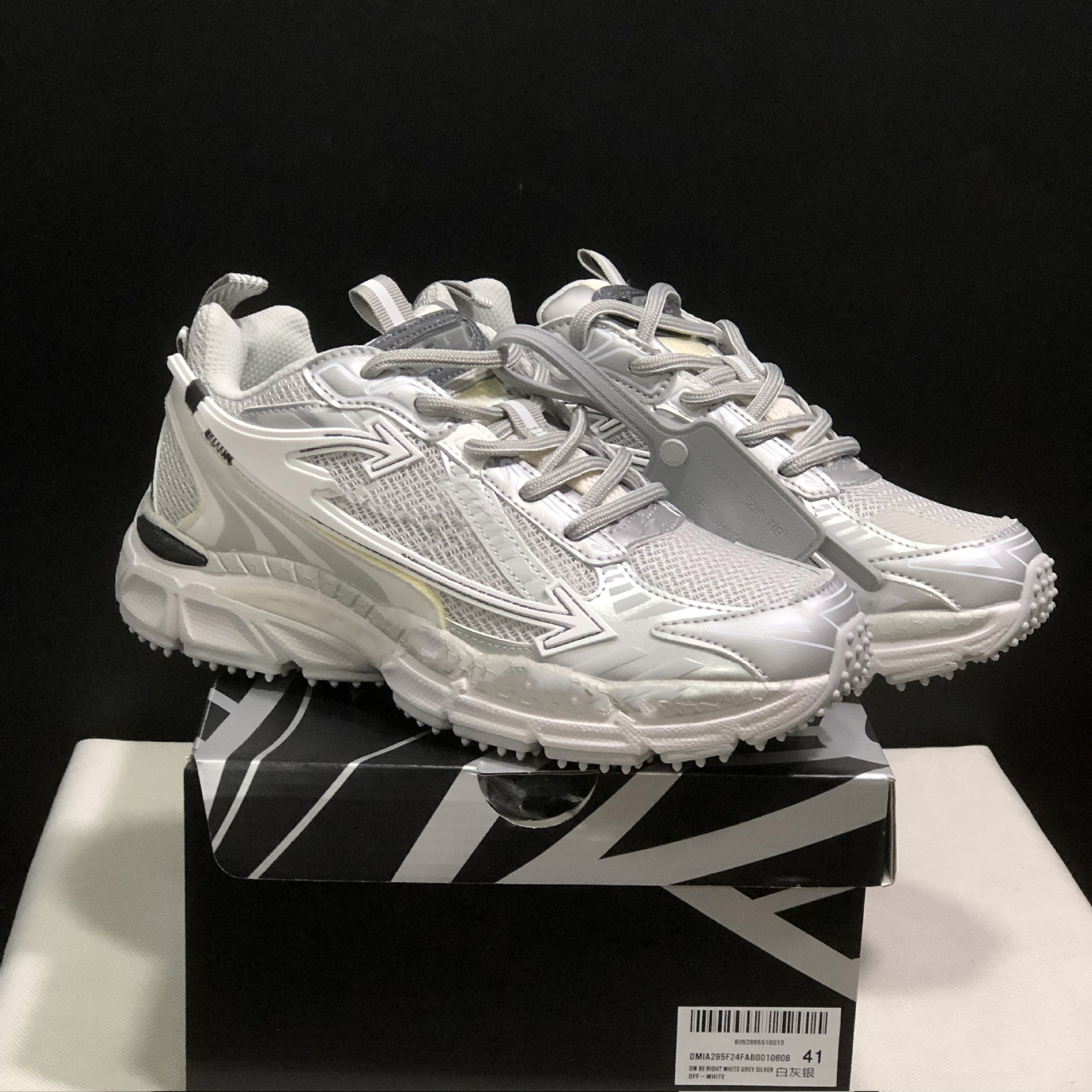 Off新款箭头系列情侣ow男女厚底网面跑鞋轻便圆头系带生活休闲鞋