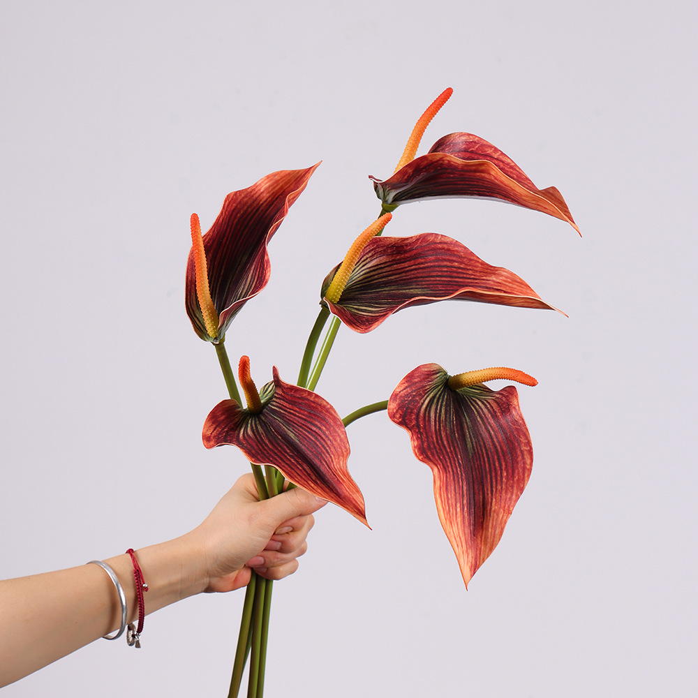 模擬観音蓮 EVA アダナス ファイヤーレッド フリージア オランダカイウ オオバコ ホームデコレーション 造花 結婚式フラワーアレンジメント