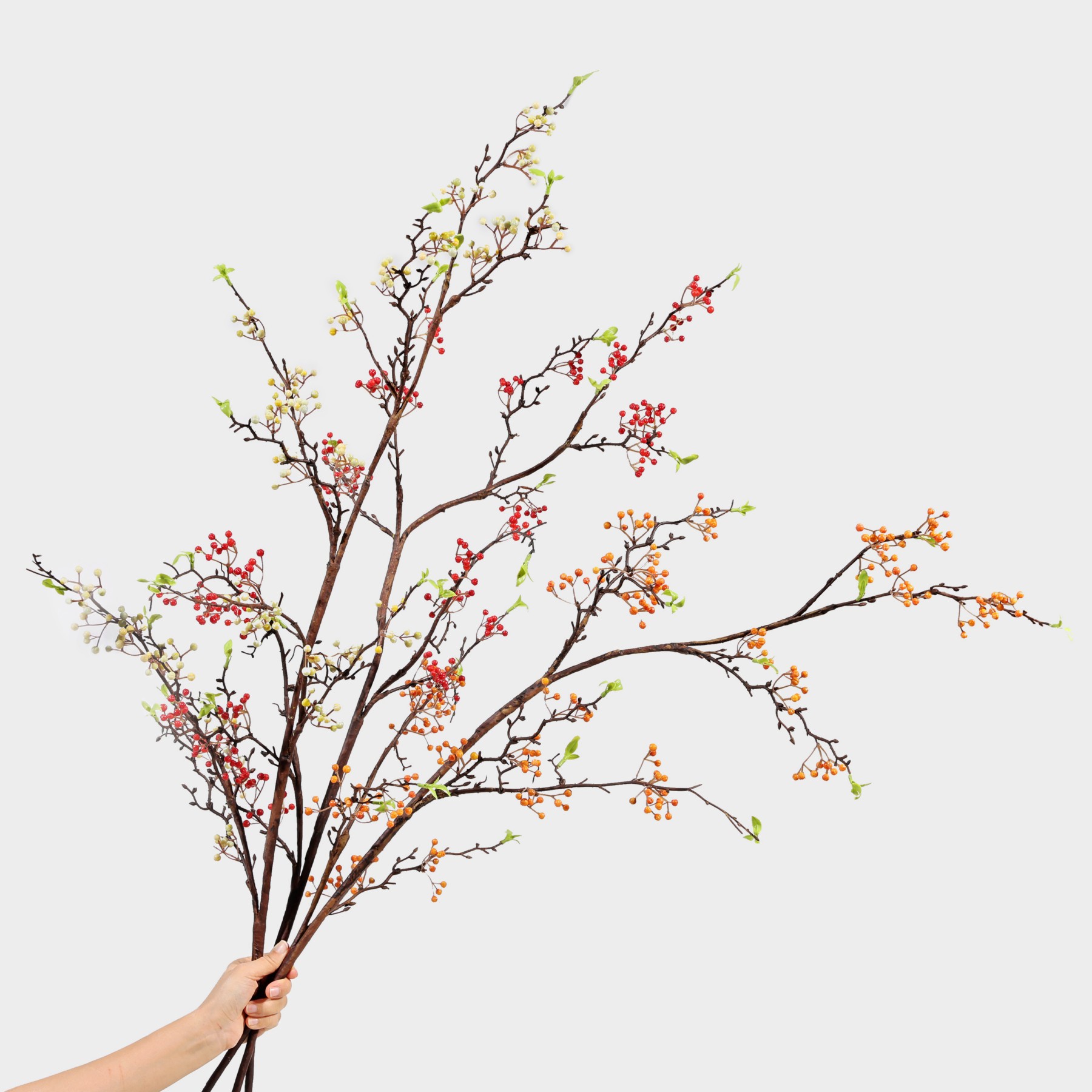 緑植オリーブの枝卸売り3叉毛糊帯果偽枝結婚祝いホテル装飾北欧装飾生け花