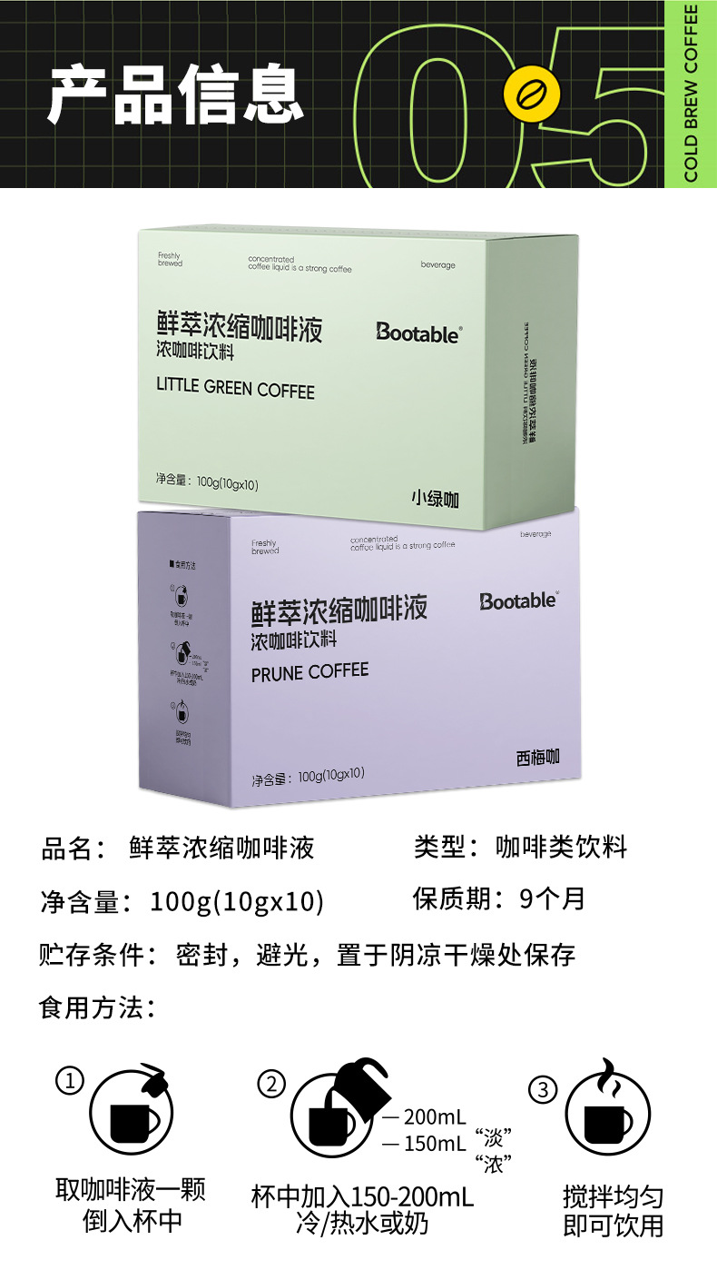 Bootable鲜萃浓缩咖啡液杯装西梅小绿咖意式冷萃胶囊黑咖啡浓缩液