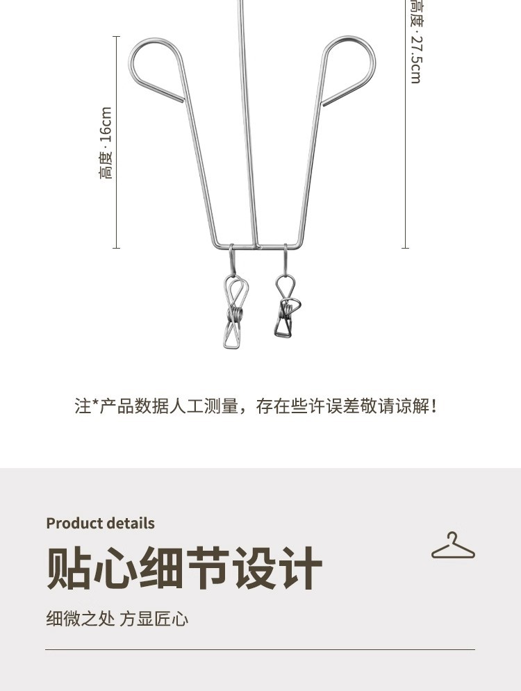 304ステンレス製衣類ハンガー、家庭用衣類掛け、子供用衣類乾燥用、厚くて丈夫、跡が残らない、滑り止め付き衣類ハンガー