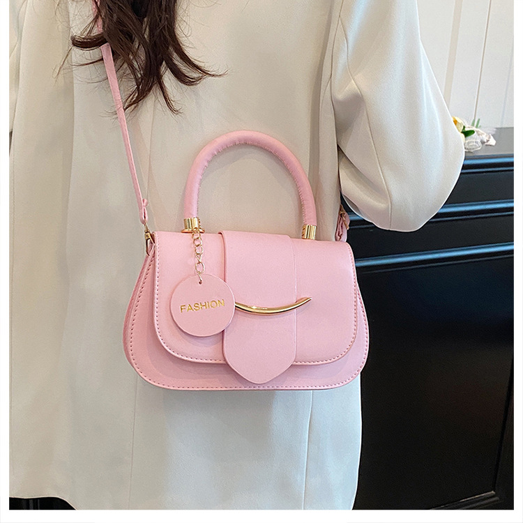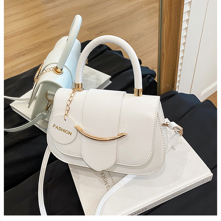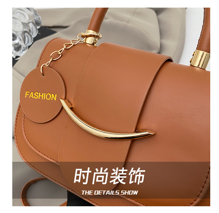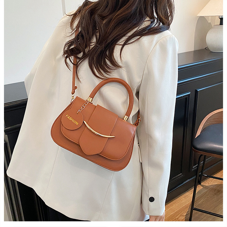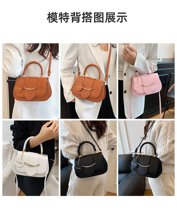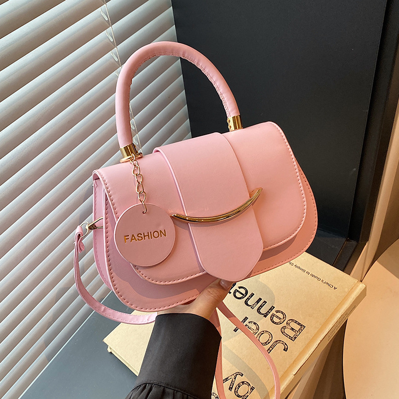 跨境时尚2025欧美新款潮流百搭手提单肩斜挎包洋气简约纯色马鞍包