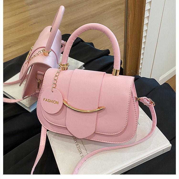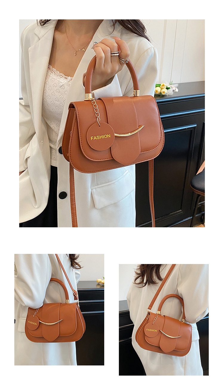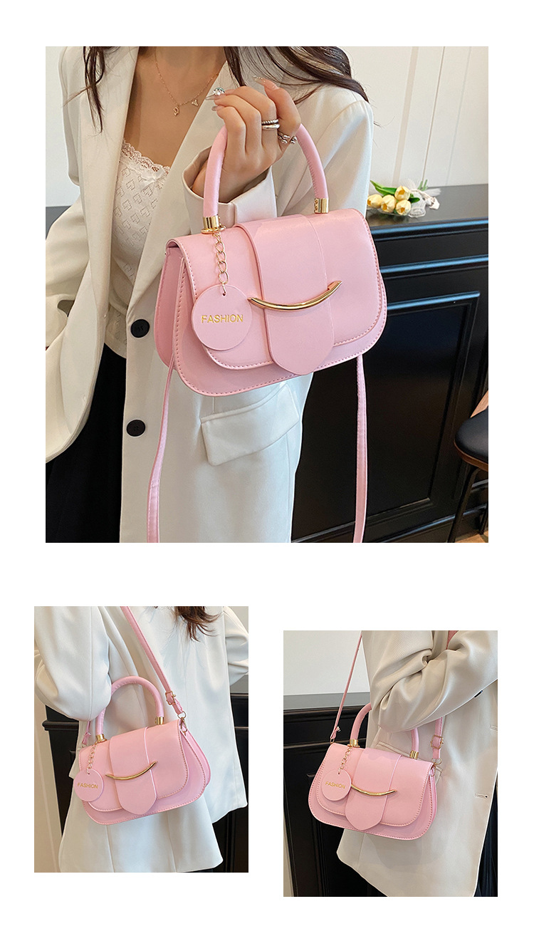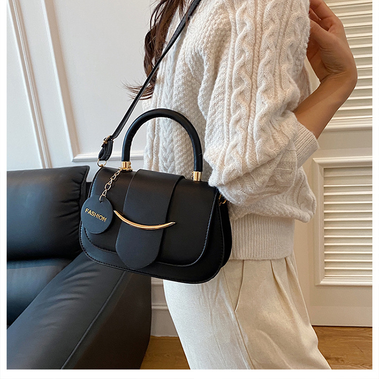 跨境时尚2025欧美新款潮流百搭手提单肩斜挎包洋气简约纯色马鞍包