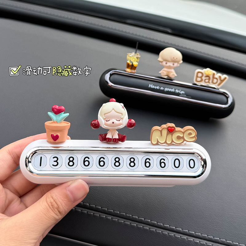 2025新款泡泡玛特停车号码牌车上临时挪车电话牌摆件创意高级感女