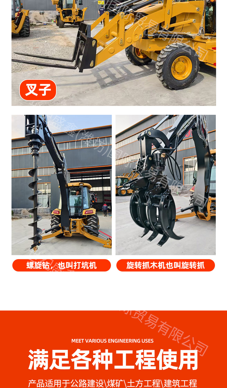 两头忙小铲车四驱山东工程单杠家用抓机40铲车挖铲两用一体式铲车
