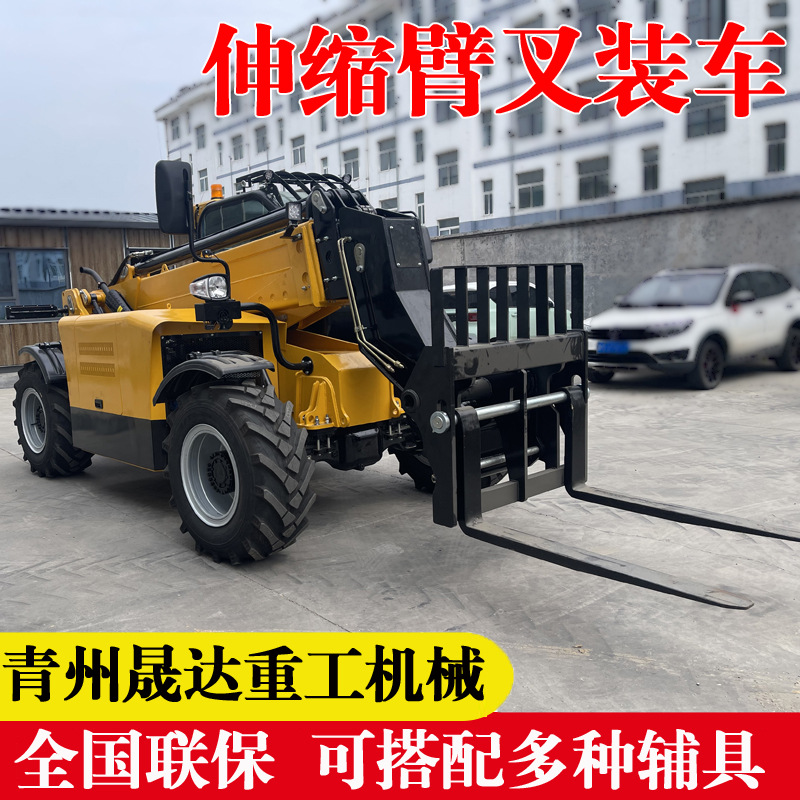 輸出伸縮アームフォーク機四駆油圧建築工事現場用荷役式高所伸縮アームフォーク機