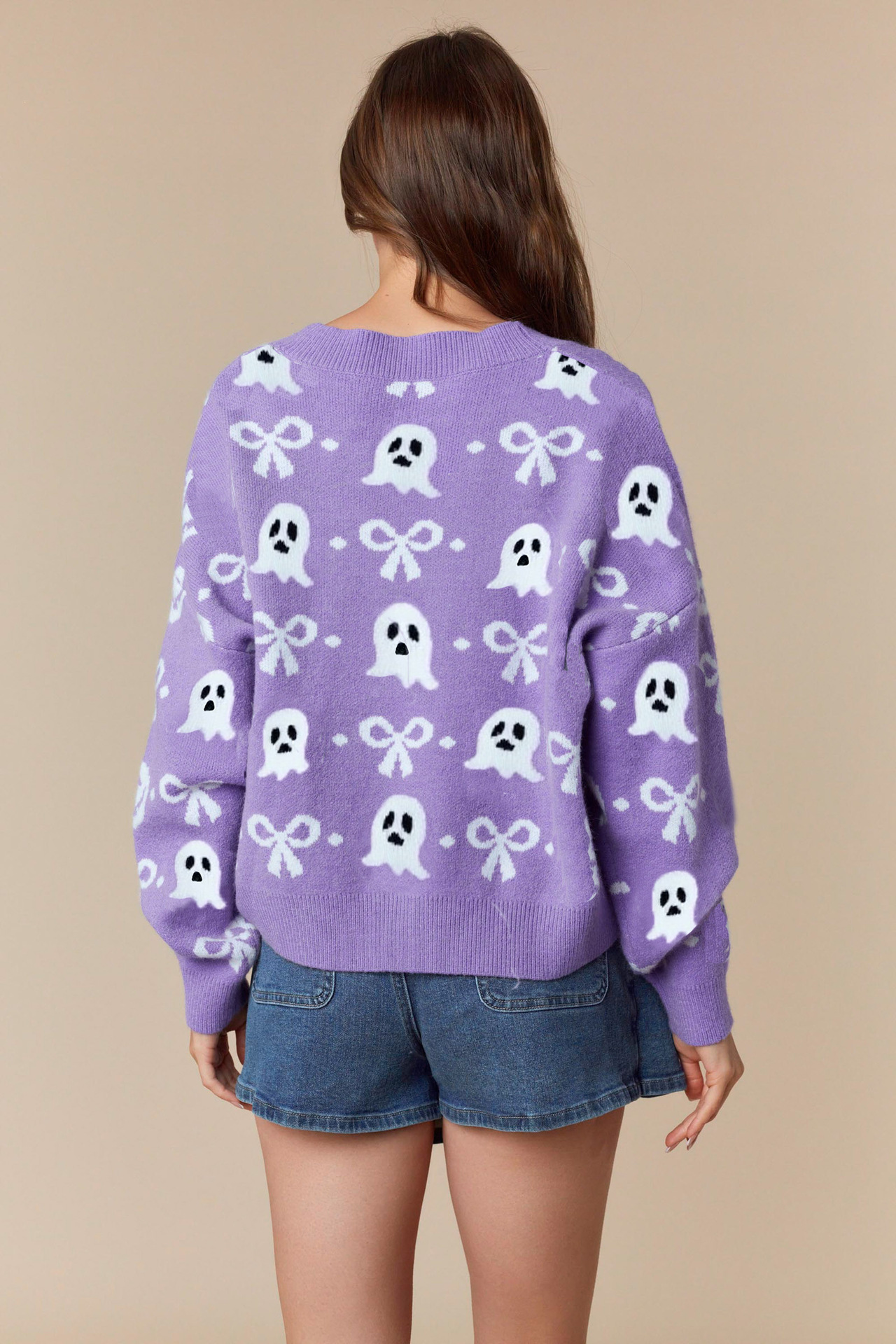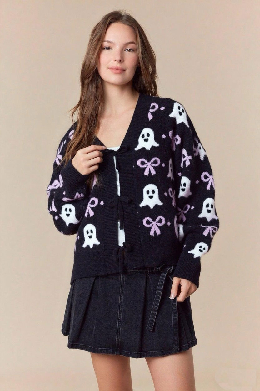 ハロウィンゴースト柄ミドル丈ニットカーディガン貿易クロスボーダー秋冬ミドル丈ルーズセータージャケット女性用