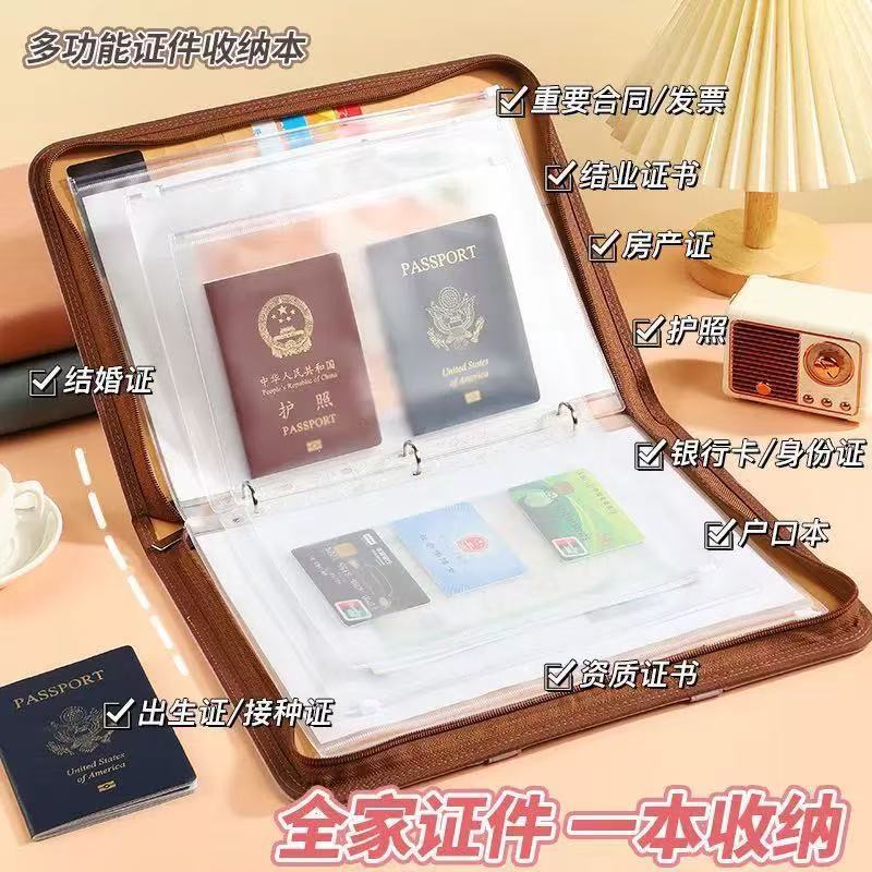 a4家用证件收纳册包家庭户口本出生证疫苗本结婚证活页夹拉链袋