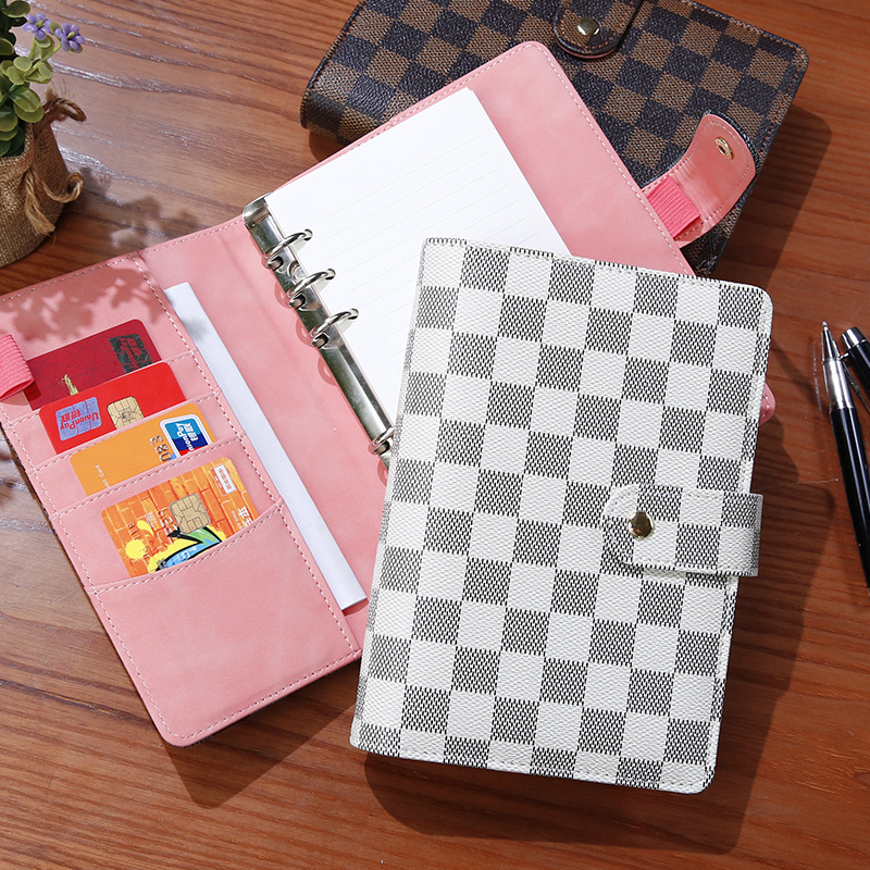 A6 マカロン多機能ハンドブックルーズリーフハイエンドレザーチェック柄ノートブック交換可能なリムーバブルメモ帳