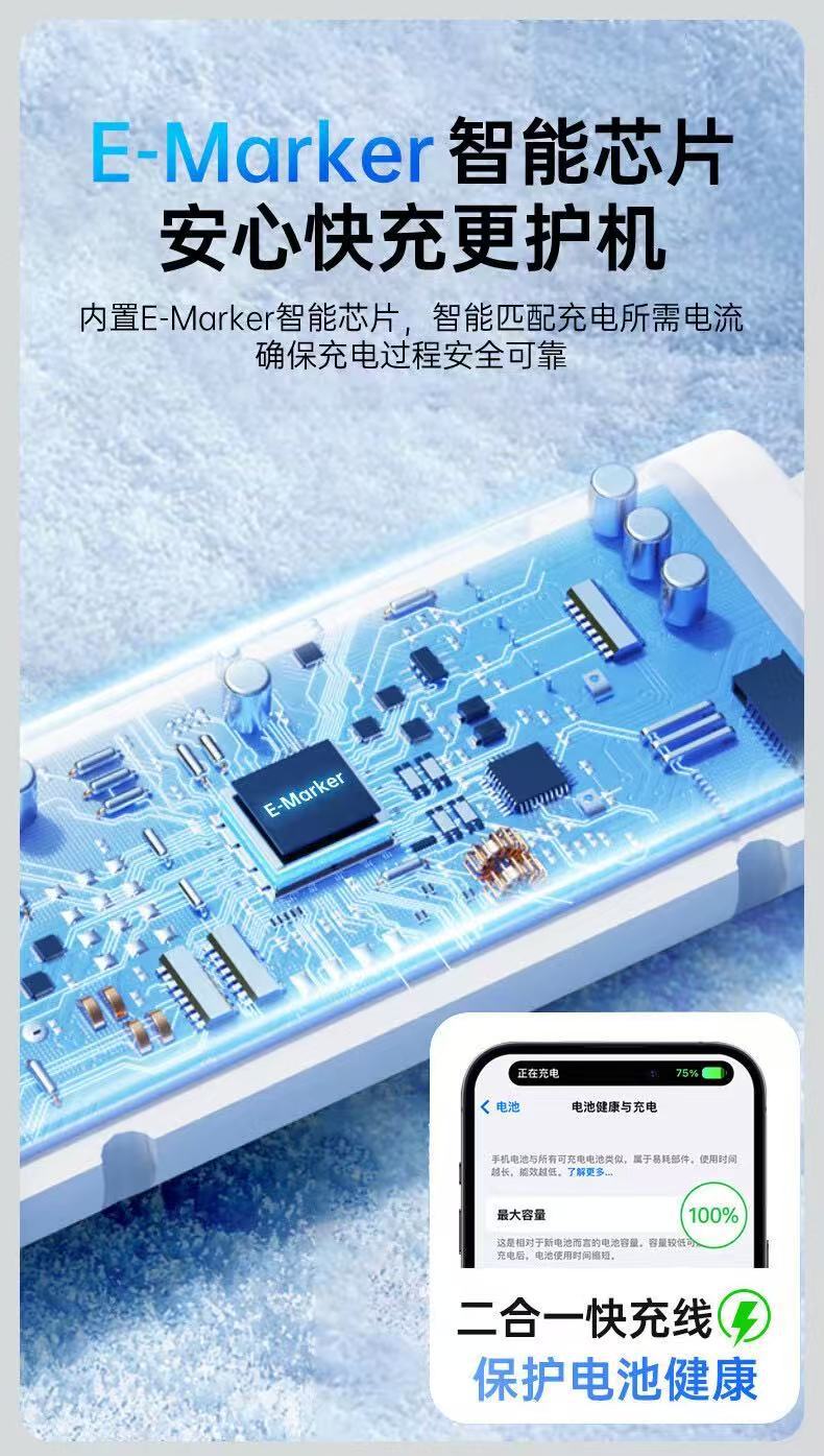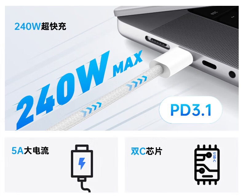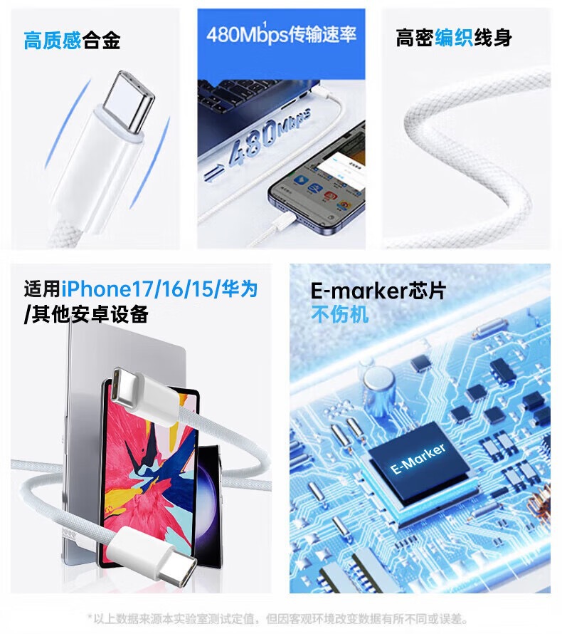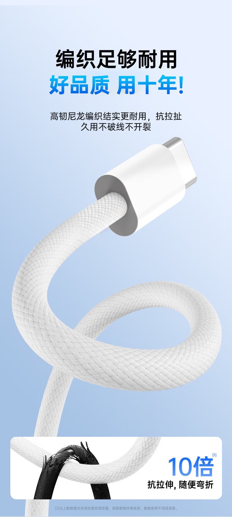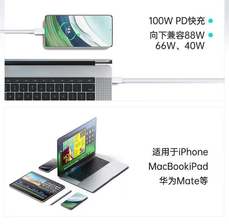 100W快充线适用苹果笔记本快充线线pd双头type-c数据线c to c充电