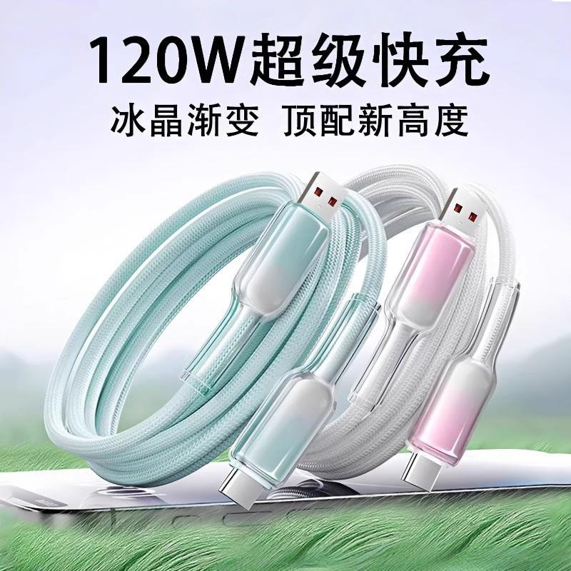クロスボーダーアイスクリスタルグラデーションデータケーブル 120W 超高速充電ケーブル PD27W Huawei Apple 15/16 充電ケーブルに適しています