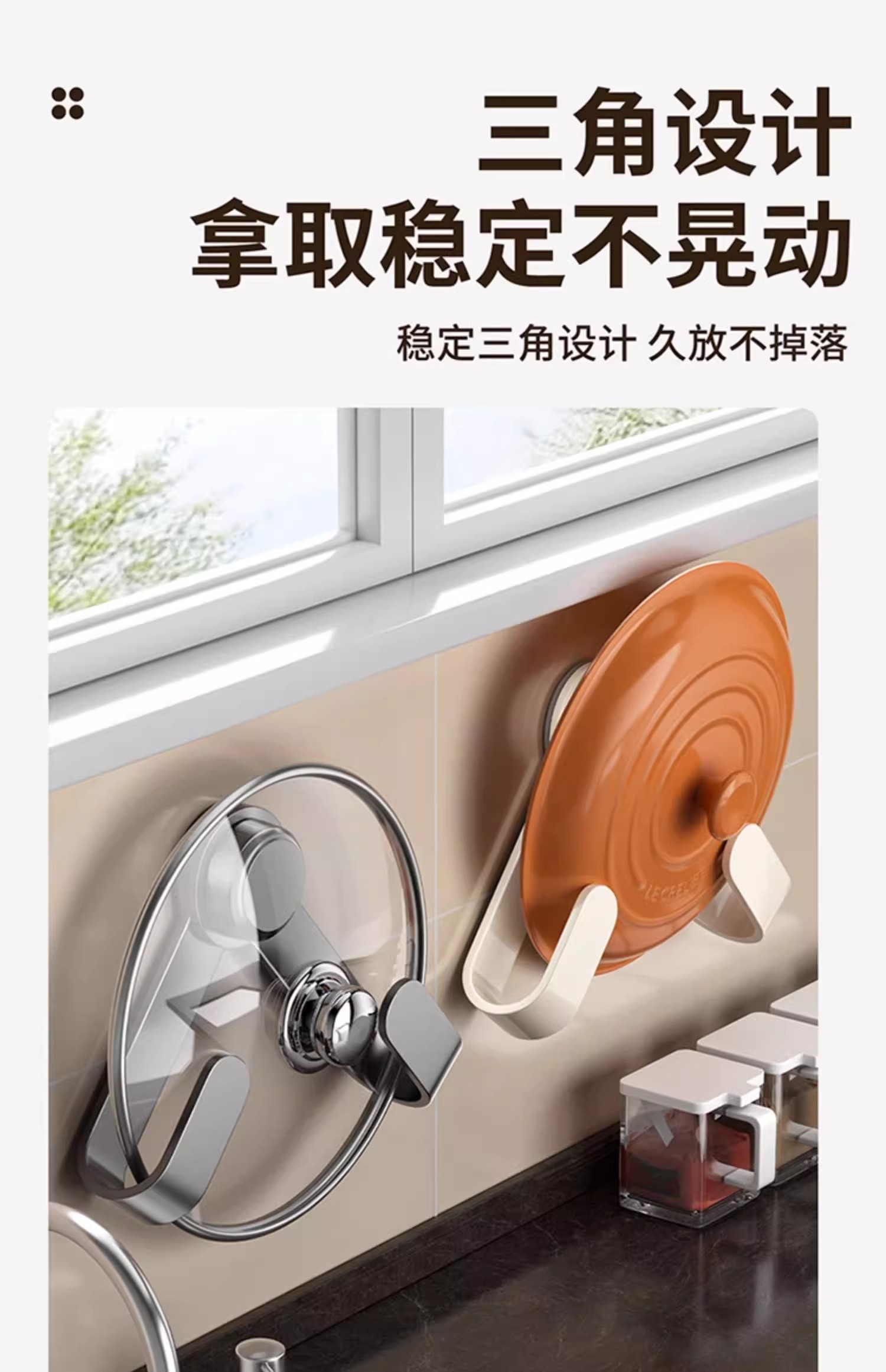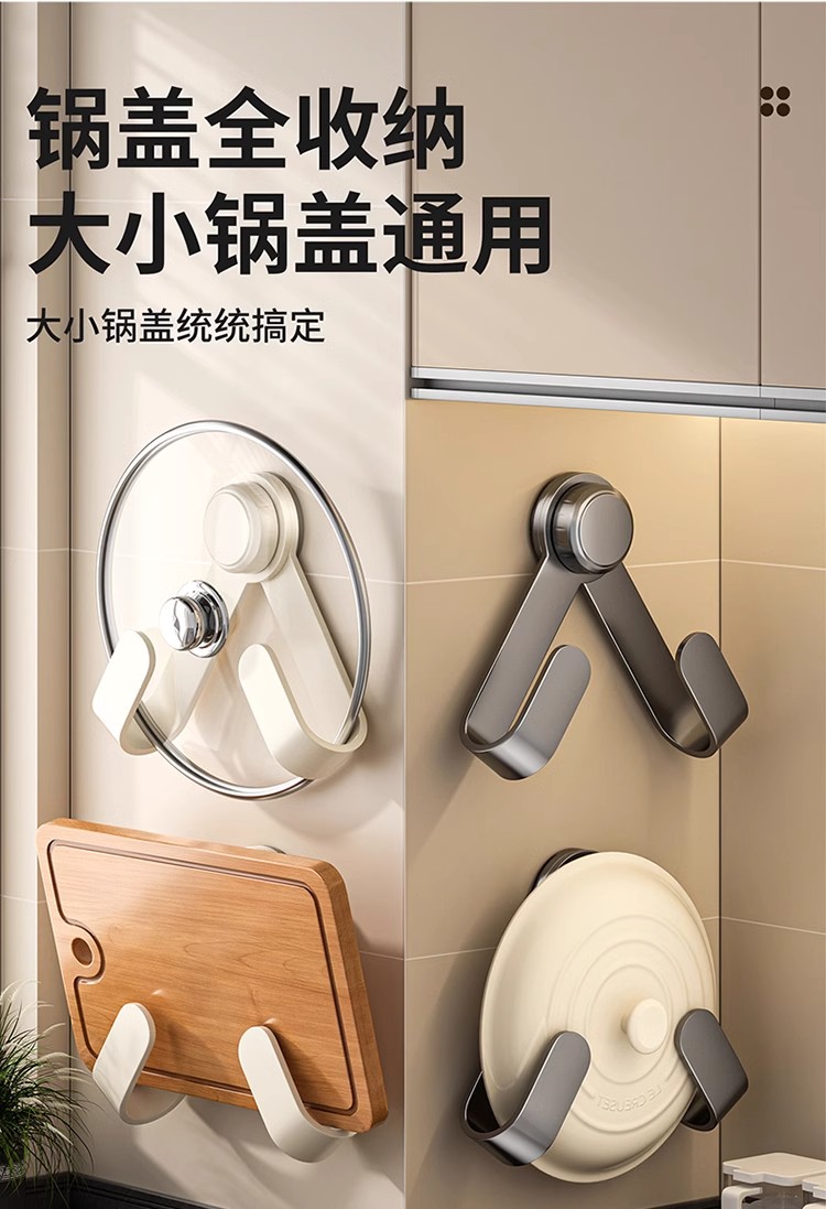 免打孔吸盘式多功能壁挂锅盖家用厨房置物子的纳神器放置器