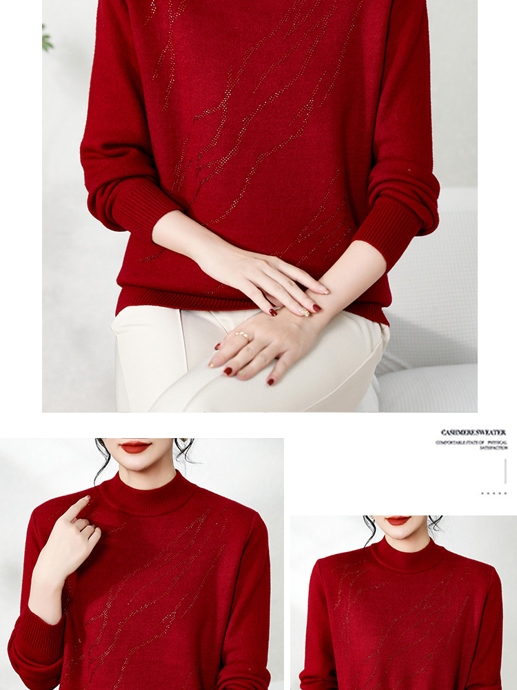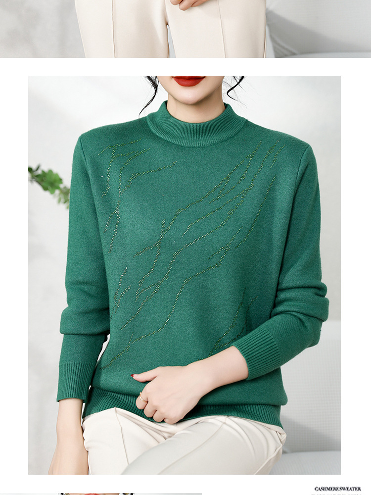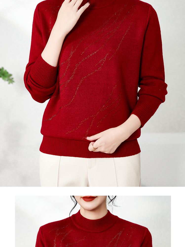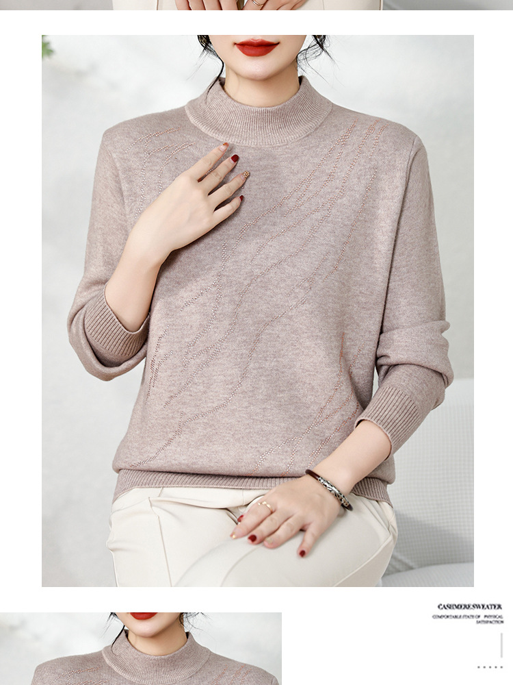 源工場 中高年向け 秋冬服 ハーフタートルネックセーター おばあちゃんニット ママ服 カジュアルプルオーバー ストレッチシャツ