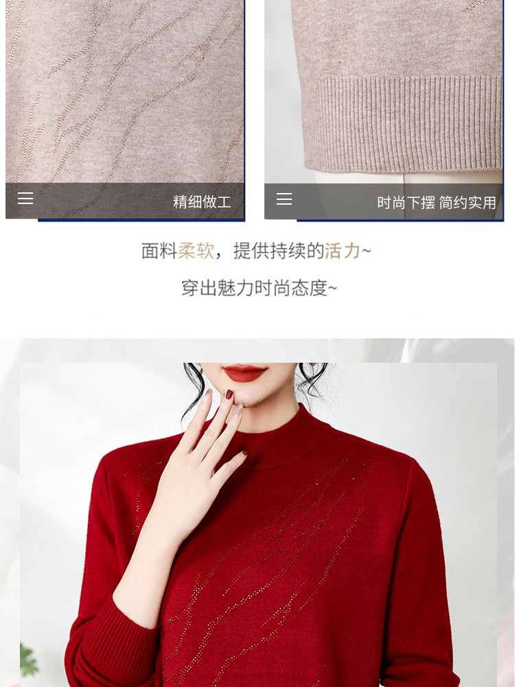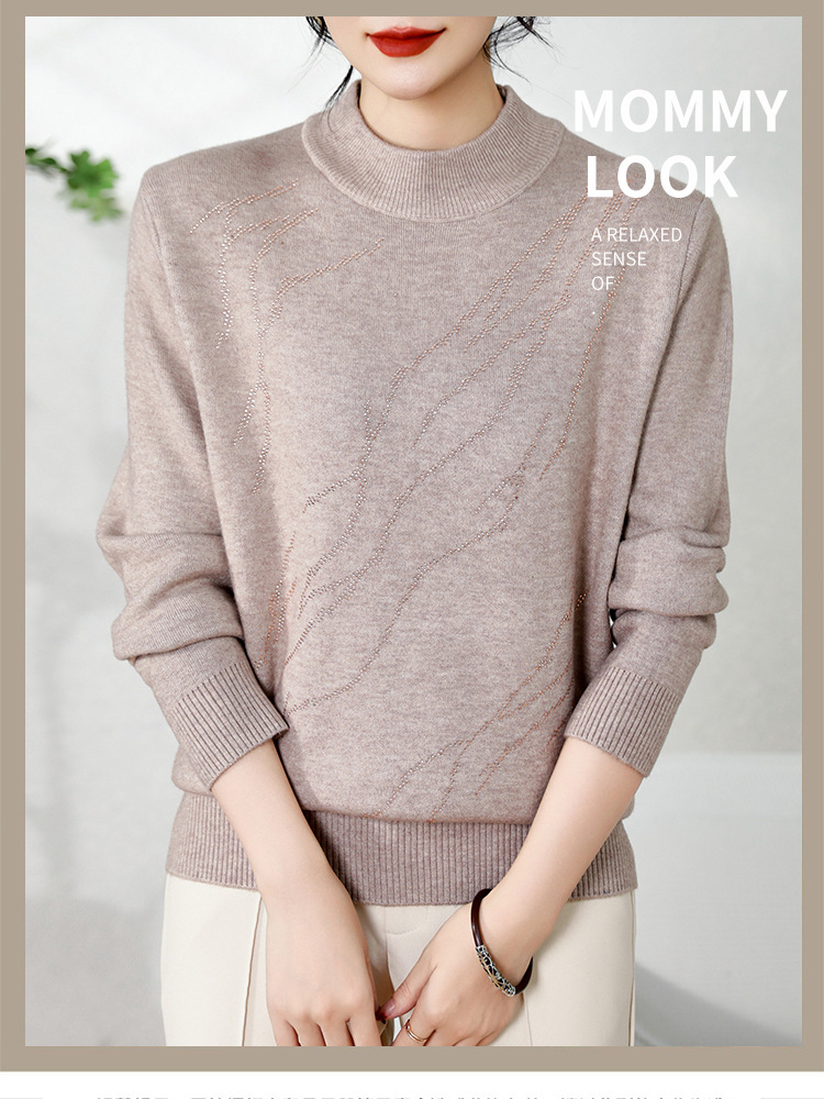 源头工厂春装新款针织妈妈装毛衣打底中老年女士春秋套头气质上衣