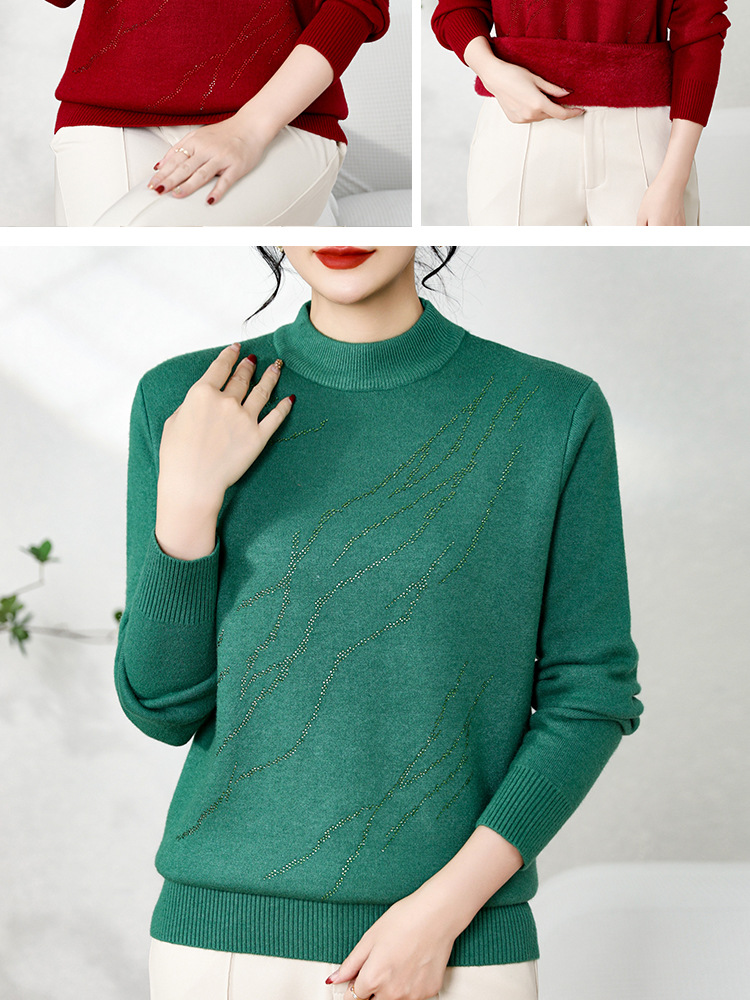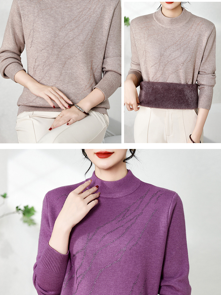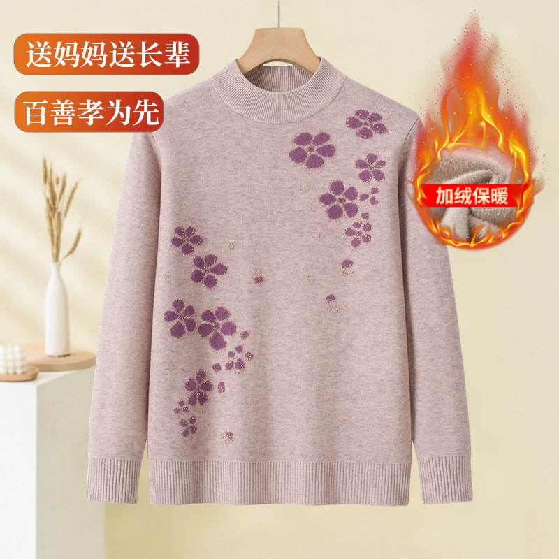 源头工厂中老年洋气妈妈装加绒保暖针织衫打底冬季奶奶装针织上衣