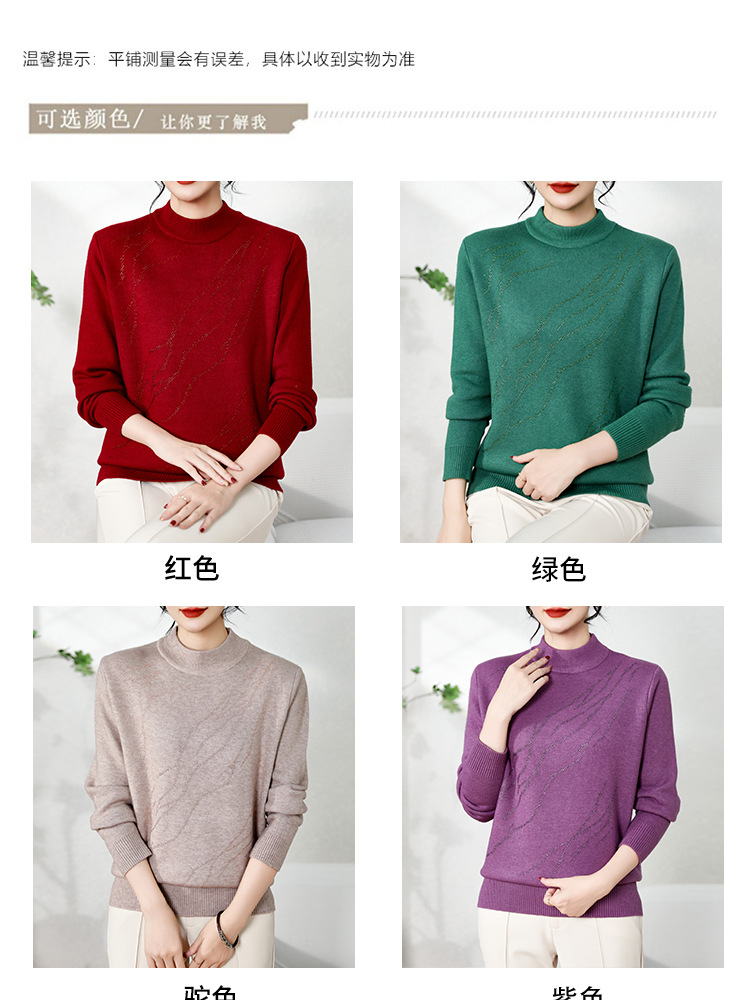 源头工厂中老年针织衫上衣半高领绣花妈妈装纯色打底衫奶奶装女装
