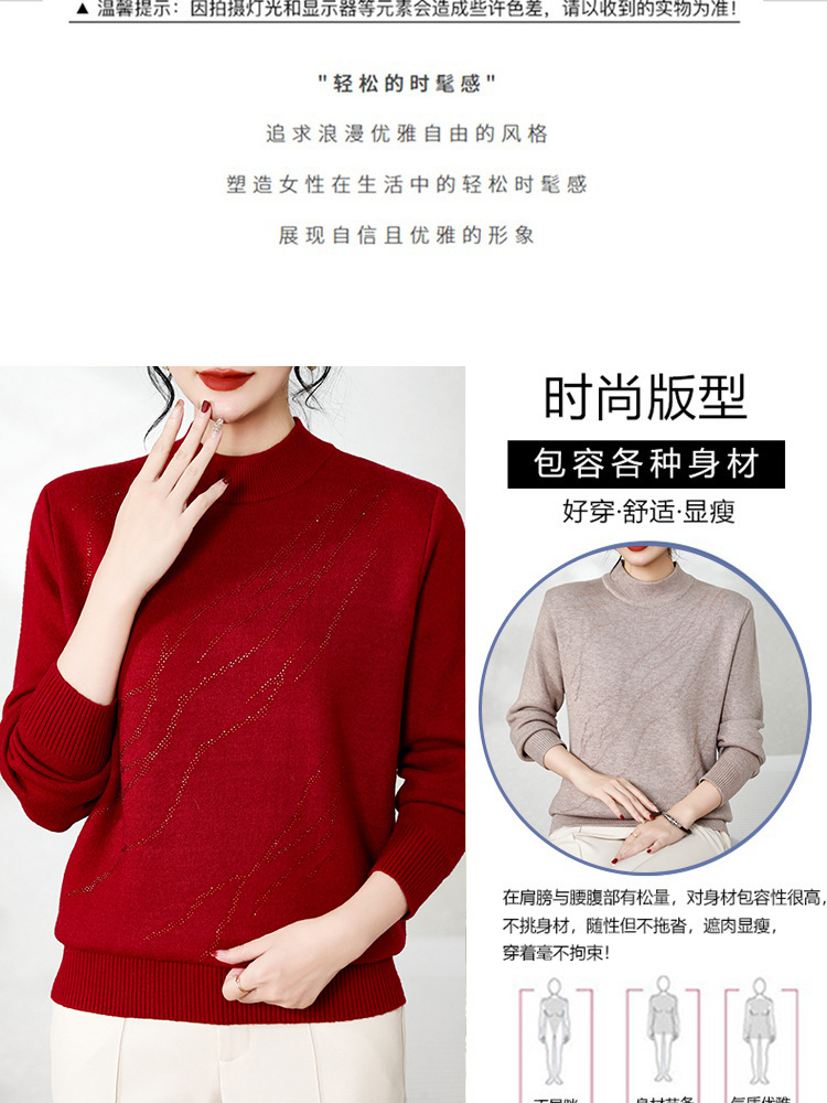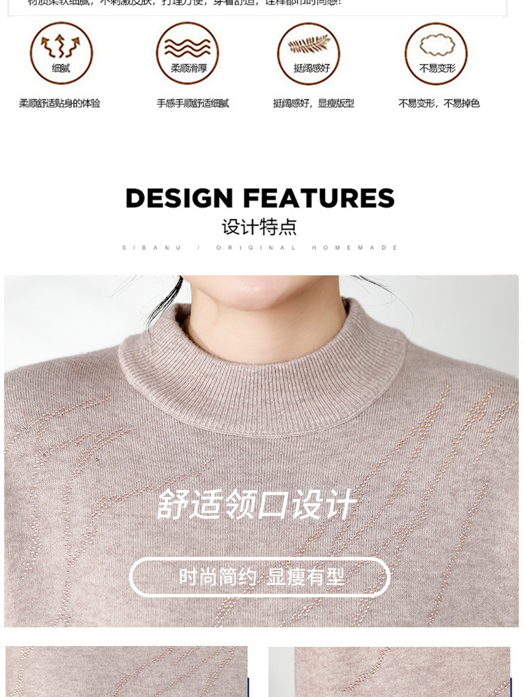 源头工厂中年纯色百搭新款柔软洋气妈妈打底套头衫秋冬亲肤奶奶装