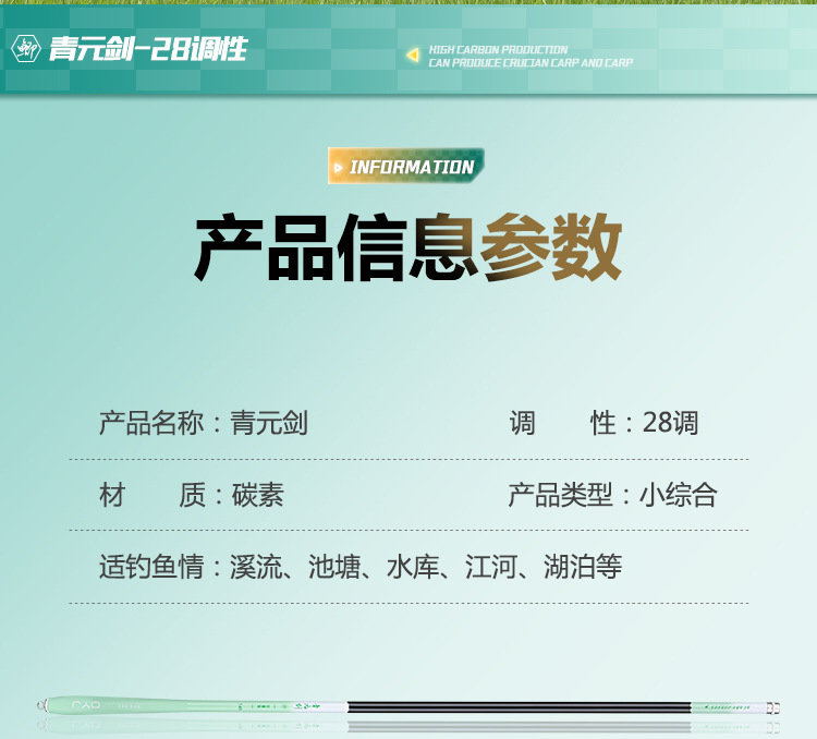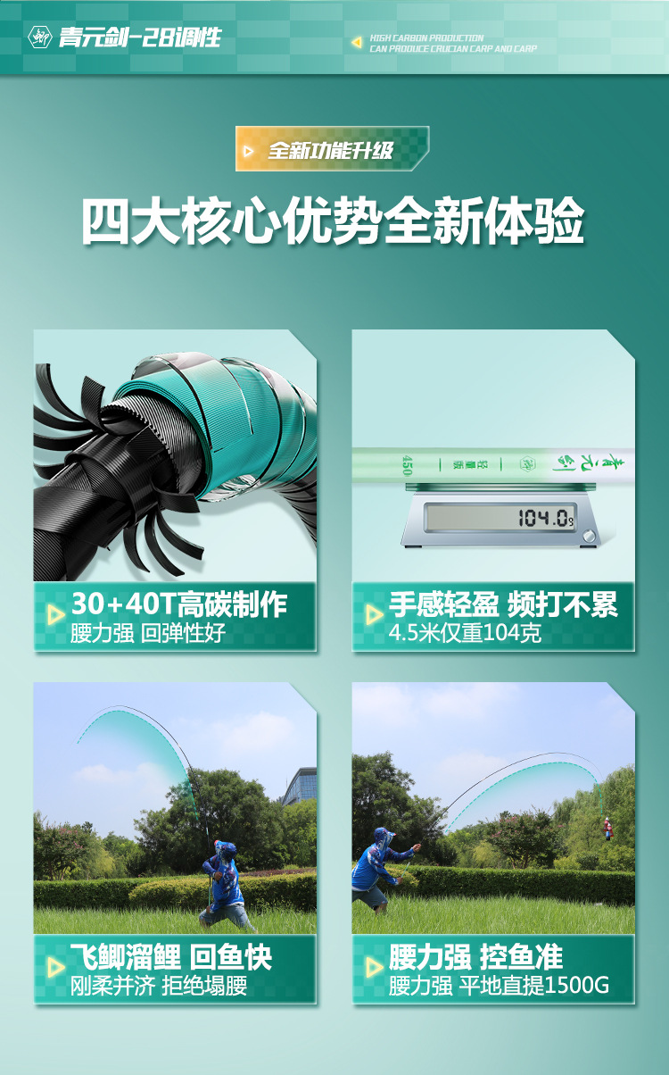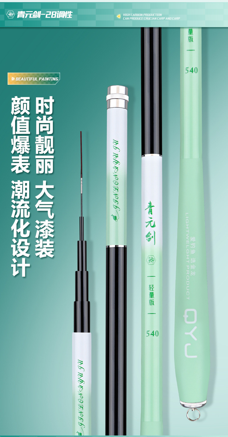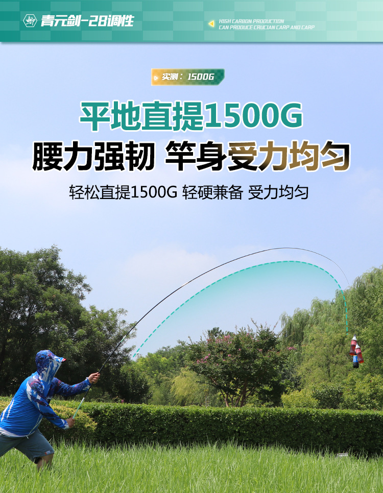 カーボン釣竿、超軽量・超硬28調整釣竿、フナ竿、釣竿、ロングセクションハンドロッド、ハンドロッド、軽量釣竿