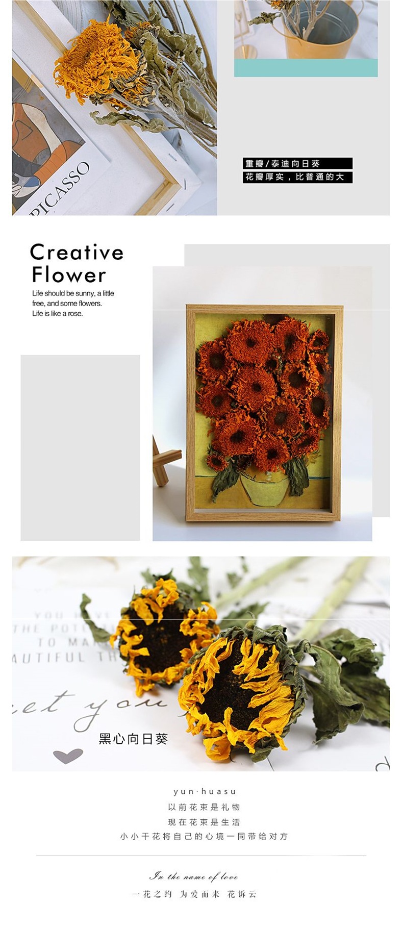 向日葵真干花风干永生花花束手工diy梵高太阳花大号复古客厅装饰