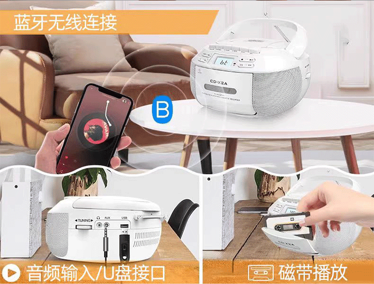 复古CD机学生录音机磁带机蓝牙专辑光盘播放器带USB带FM收音AM音