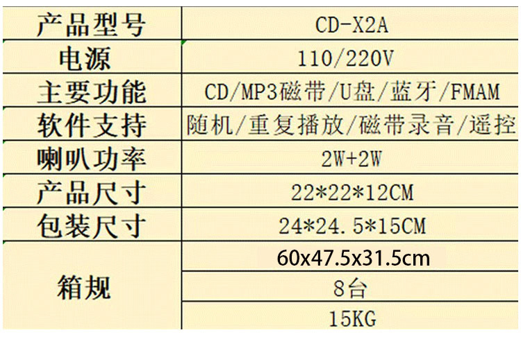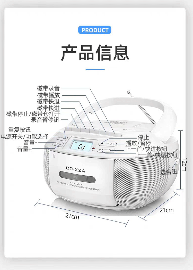 多功能CD播放机立体声播放器蓝牙音响复读机FM/AM收音机磁带机