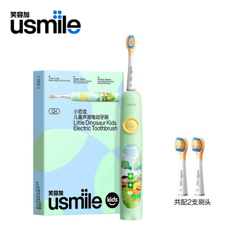 usmile笑容加儿童电动牙刷Q4 声波全自动软毛充电3-6-12岁恐龙刷