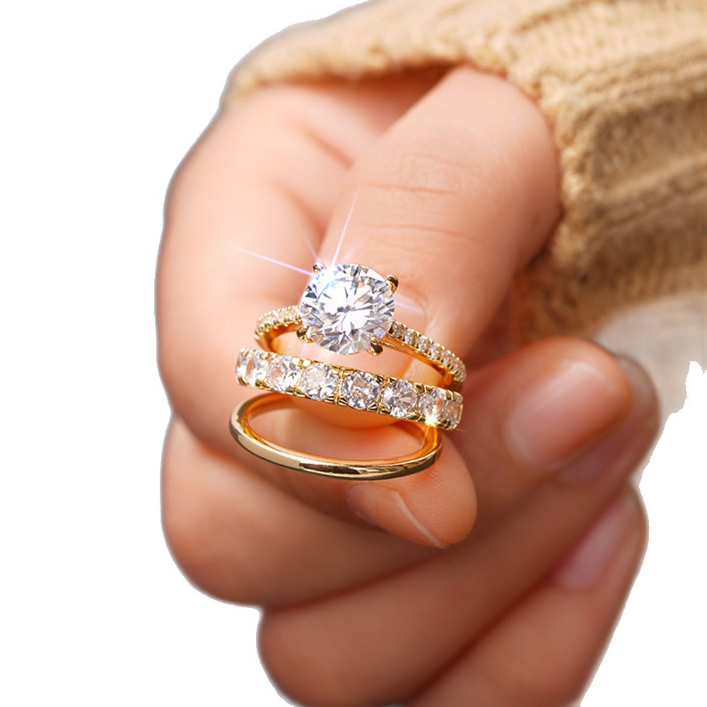 三件套金色合金镶嵌锆石装饰戒指女士日常佩戴派对情人节生日礼物