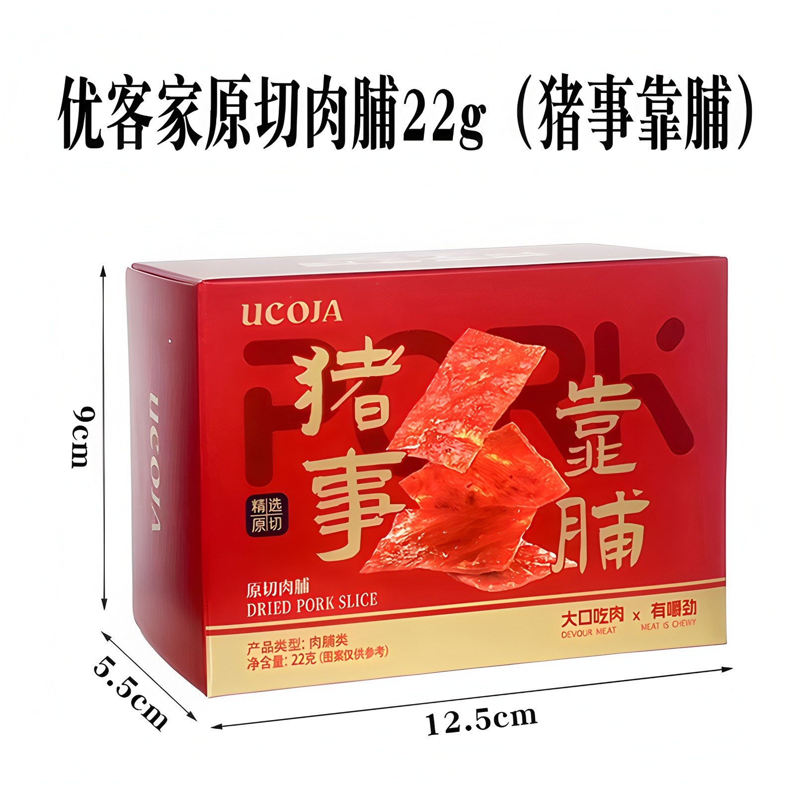 悠客家猪事靠脯原切猪肉脯红色结婚订货喜糖伴手礼零食18g/3袋装