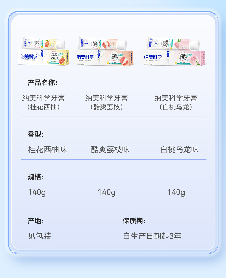 纳美科学小苏打牙膏海盐薄荷源生护龈白桃绿茶龙井茶珍珠粉