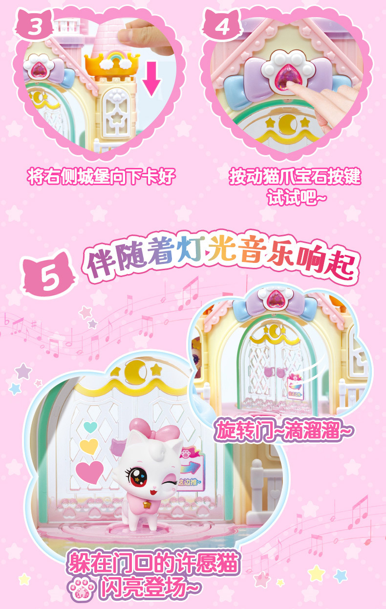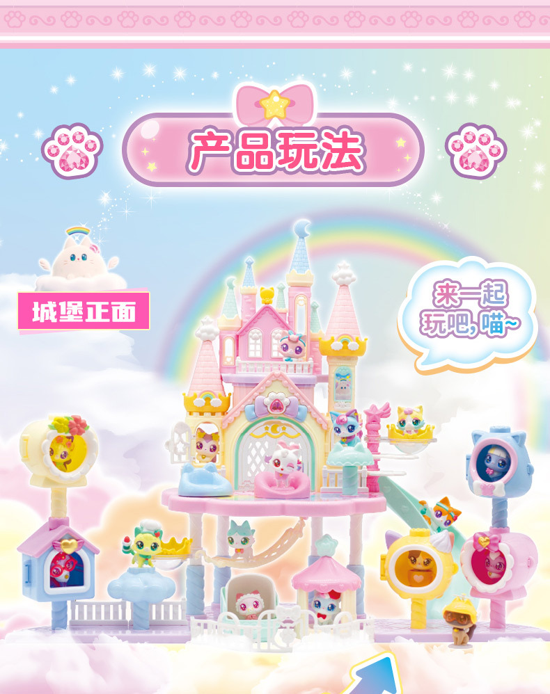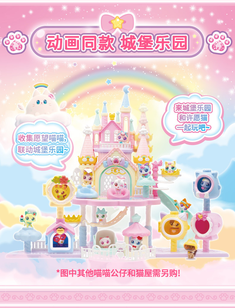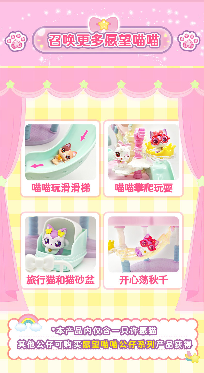 301301【城堡乐园】发声发光 按键变形 自动旋转 升降城墙 配件丰富 可联动单只公仔猫屋,301302【魔法背包】许愿猫+氛围灯+背包场景2种形态+送文具套装+配件丰富(联动其他喵喵),301303【公主猫的星空小屋】按键开灯/两种形态/赠特殊公主猫+多款饰品,301101喵喵召唤器【DIY串珠机】自动串珠+8吊坠+50克珠+固定器+串绳+收纳盒+说明书,301102多功能【喵喵手表】炫彩声光+听音乐+玩游戏+测运势+手表项链2种形态+送3徽章,301103多功能【喵喵手帐】彩色触控屏+养宠物+20种游戏+智能识别+功能卡牌+手帐套装,301201【许愿猫】公仔+猫屋+底座+手帐卡牌+角色卡牌(可合体其他猫屋),301202【漂亮猫】公仔+猫屋+底座+手帐卡牌+角色卡牌(可合体其他猫屋),301203【爱意猫】公仔+猫屋+底座+手帐卡牌+角色卡牌(可合体其他猫屋),301204【轻松猫】公仔+猫屋+底座+手帐卡牌+角色卡牌(可合体其他猫屋),301205【明星套装】聪明猫+可可猫+送手帐卡牌+猫屋(可合体其他猫屋),301206【乐园套装】拿铁猫+旅行猫+送手帐卡牌+猫屋(可合体其他猫屋),301207随机1款【喵喵公仔盲盒】独有公仔+猫屋+底座+手帐卡牌+连接器(可合体其他猫屋),301207整盒6款【喵喵公仔盲盒】独有公仔+猫屋+底座+手帐卡牌+连接器(可合体其他猫屋),301209【语音公仔许愿猫】智能互动+会说话/唱歌+运势模式+动画模式+关节可动