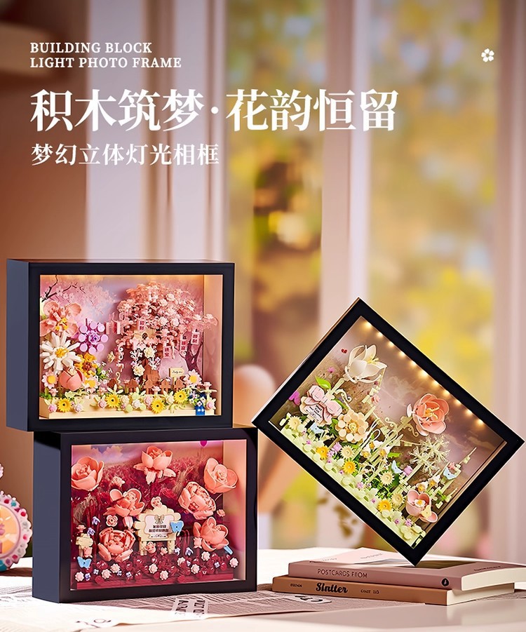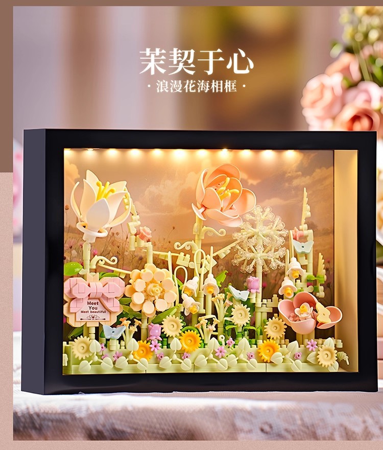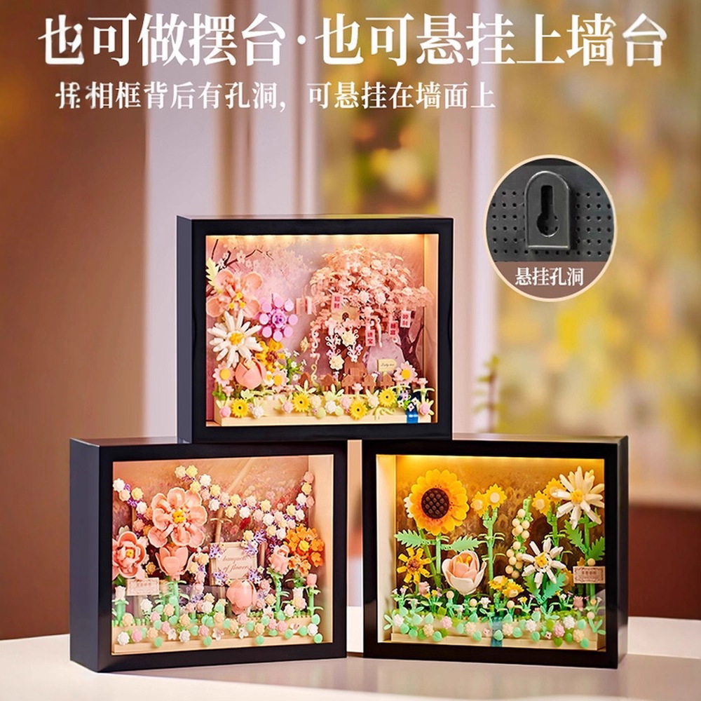永生花微颗粒积木玩具diy拼装室内摆件挂画立体相框系列女生礼物